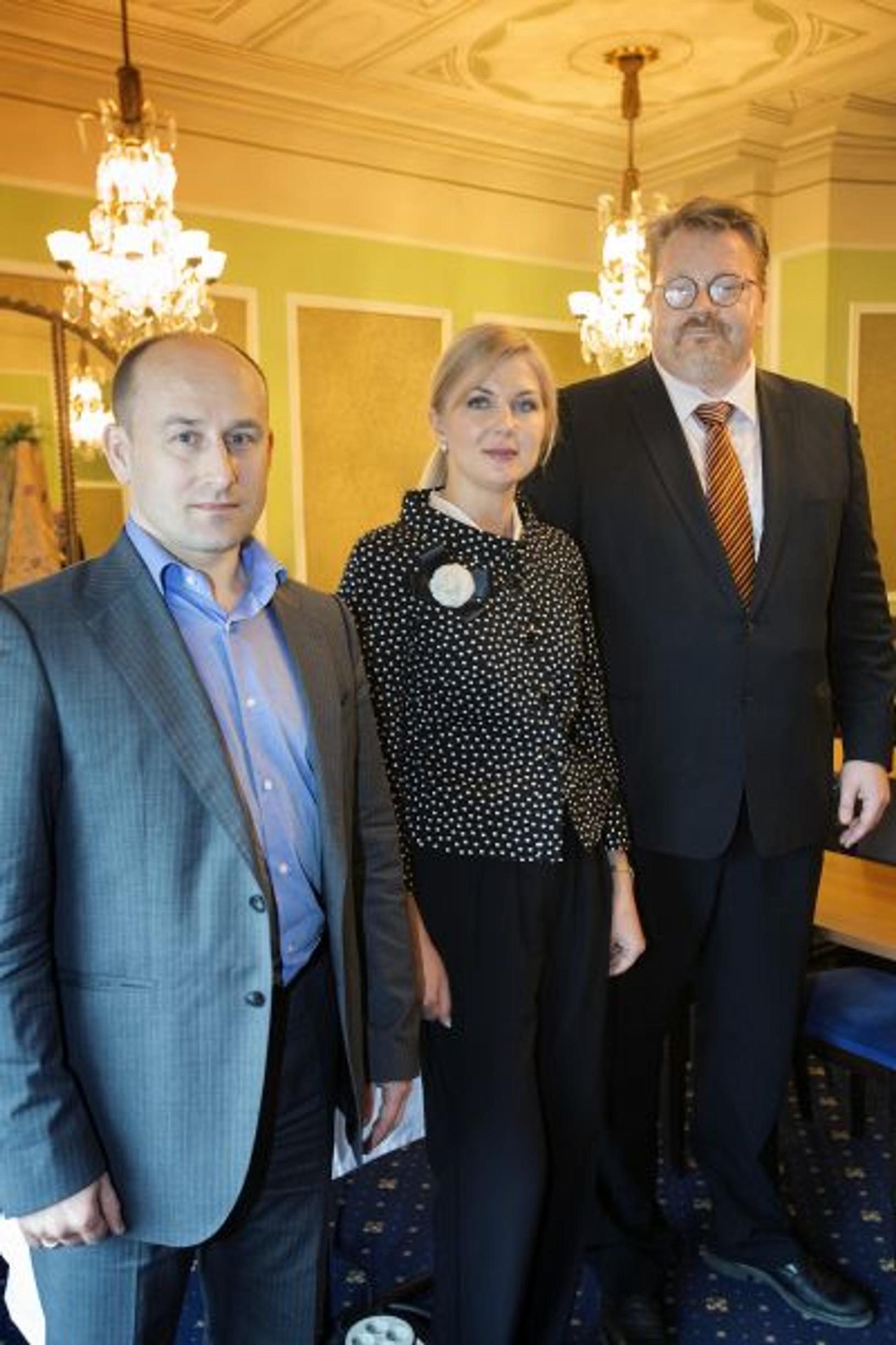 Kuvassa vasemmalta: Nikolai Starikov, Irina Volynez ja Johan Bäckman.