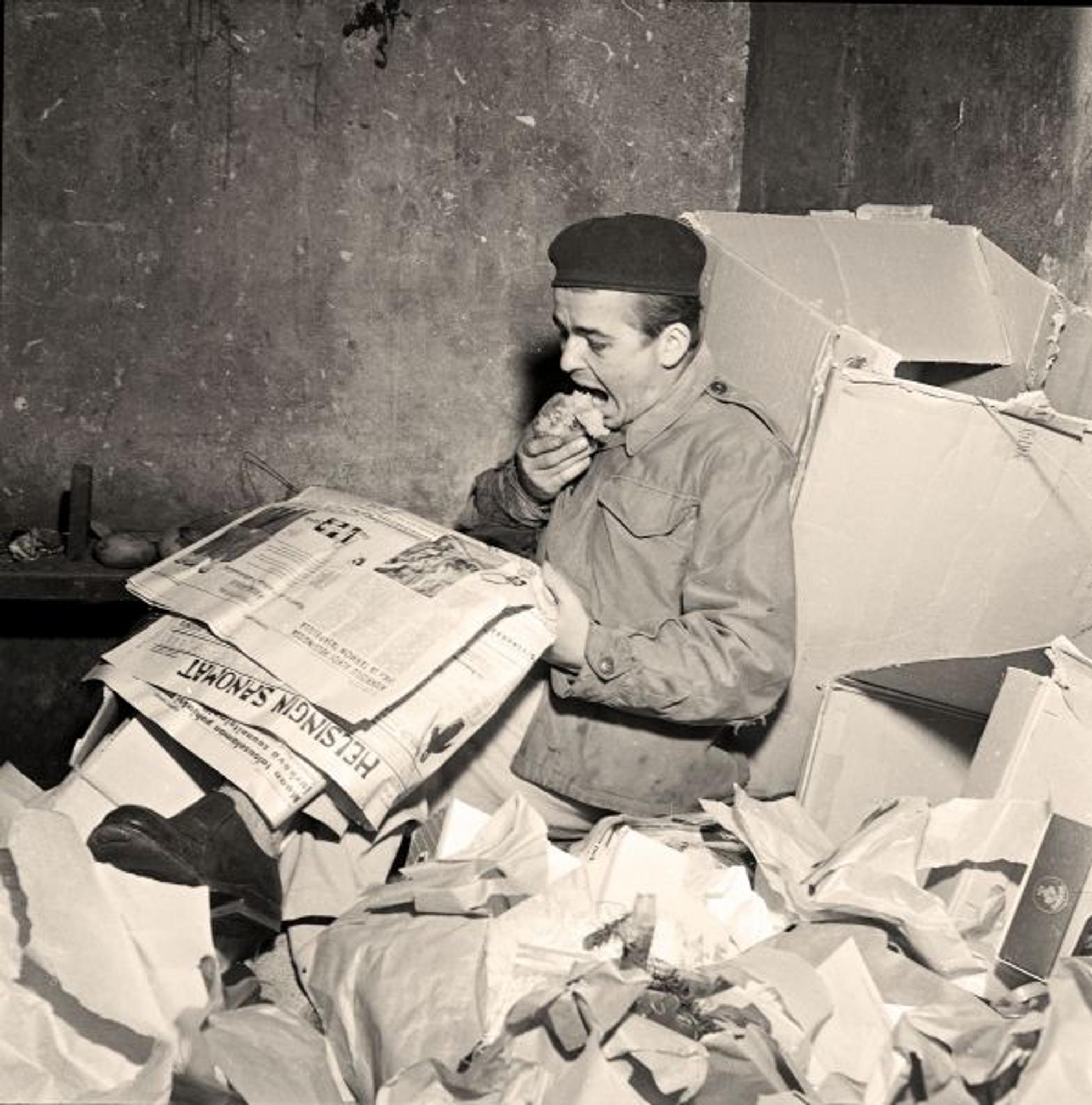 – Mun käy oikein kateeks. Noin kiva boksi, kilo aplareita ja tossa on päivälehtikin. Tsiikaa sitä ja syö aplaria, mä otan foton, kiusoittelee valokuvaaja yrittäen matkia stadin murretta.