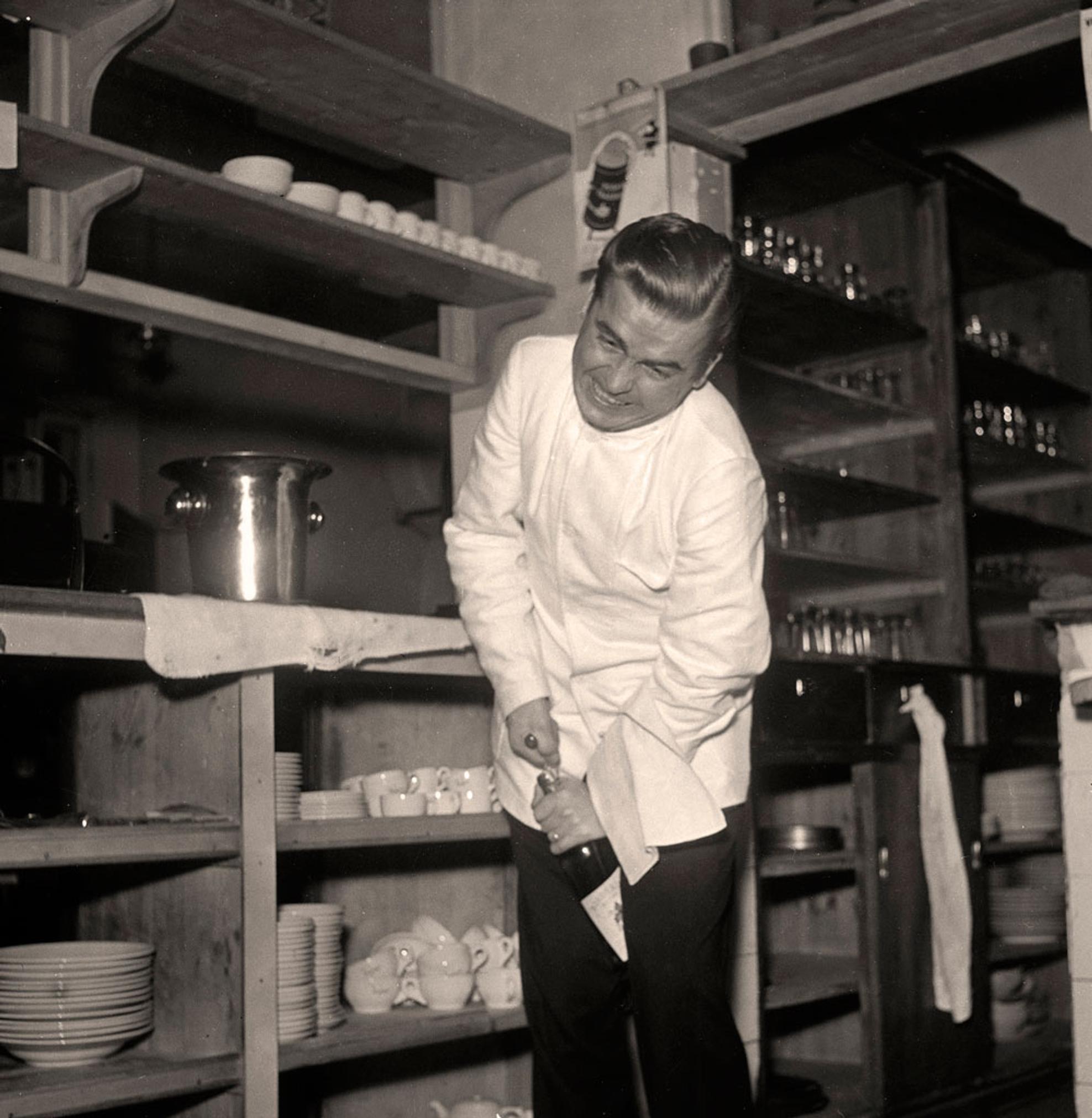 Asetin pullon takaisin jäähdyttäjään, levitin sen niskaan sirosti liinan ja kumarsin taas jäykästi. Tässä vaiheessa olin hovin kertoman mukaan ollut punainen kuin keitetty krapu. Nyt kun olin saanut jo melkoista taitoa ja tottumusta ravintolahommissa, ilmoitin tarjoilijoille, että hoitaisin mielelläni kabinetissa istuvan ”erikoisseurueen”.