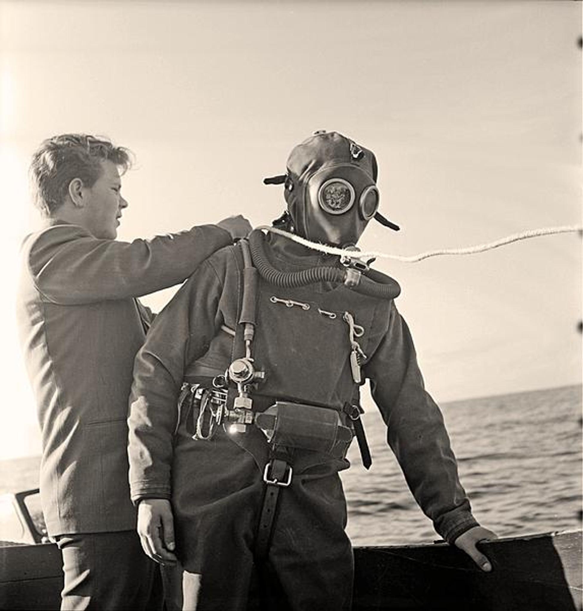 – Onko sukeltaja ollut jo pohjassa, kysyy taas joku laivasta.