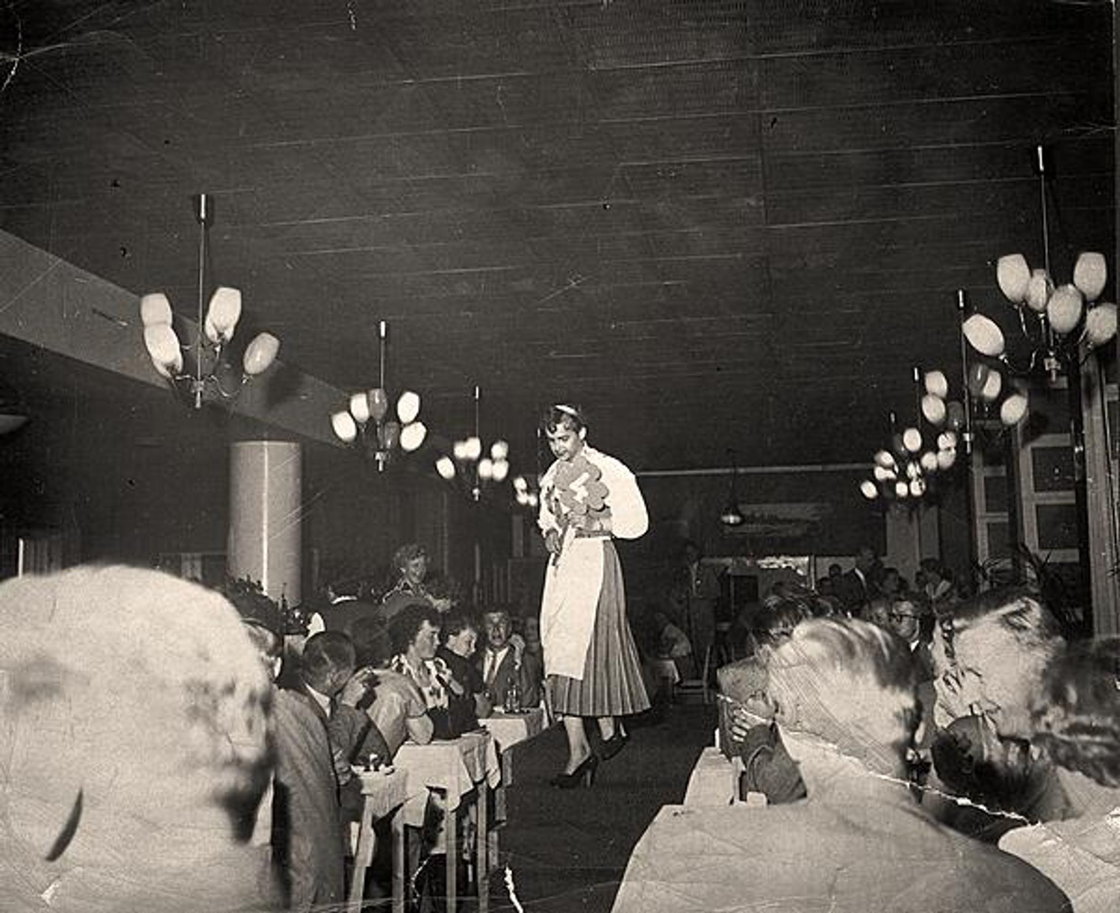 – Niin mutta ihan totta, kun yleisö on juuri sopivasti ehtinyt päästä parin lasillisen makuun, maistuu tällainen tyttö! Sano nyt edes kannustusmielessä että joo!