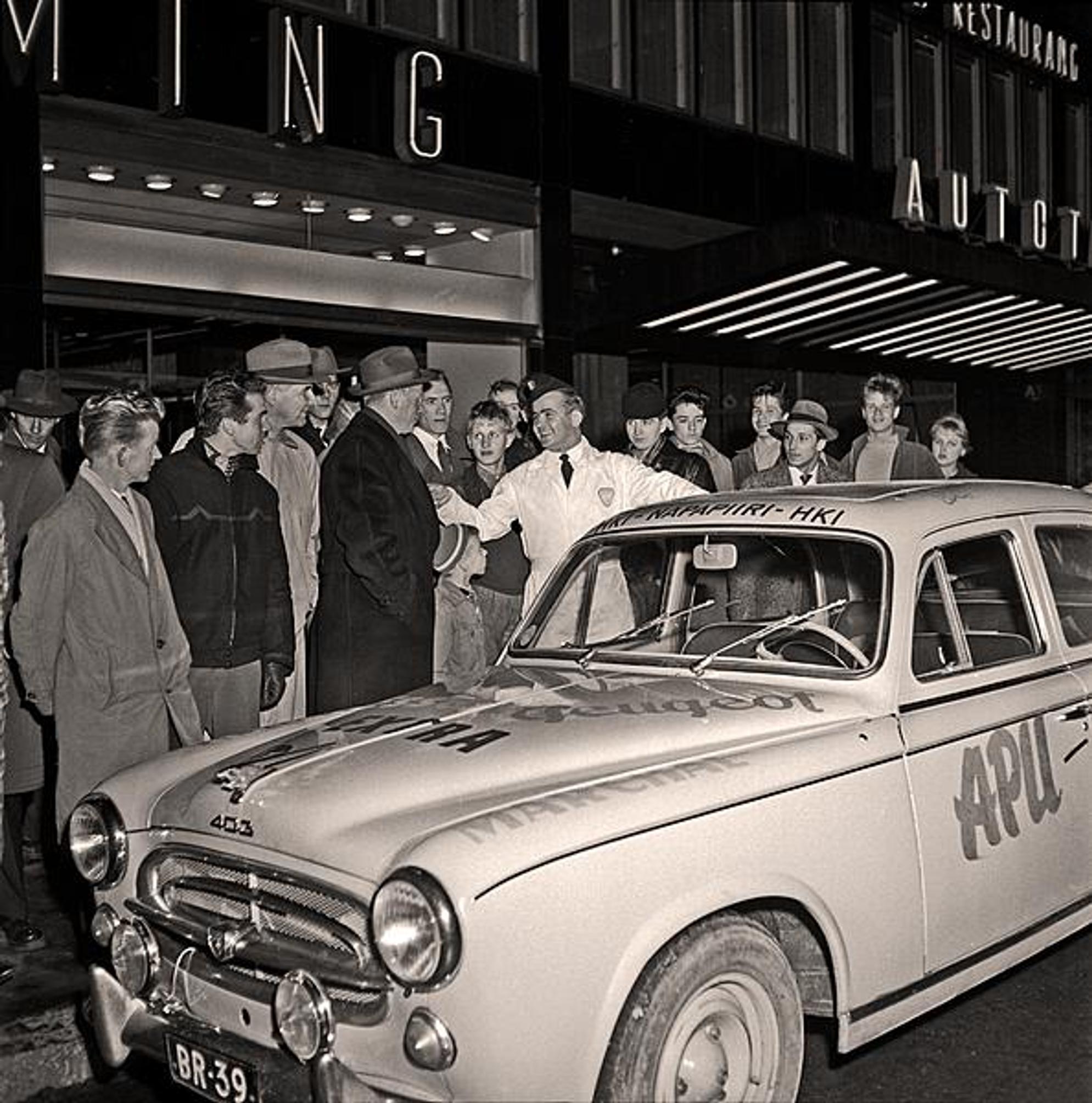 Kun Peugeotit puolta tuntia myöhemmin lähtivät jälleen kiitämään Suomen teitä, olimme ehtineet syödä lihalientä ja juoda kahvia. Meitä oli haastateltu ja valokuvattu. Olimme käyneet peseytymässä, kuin myös autot, jotka lisäksi oli rasvattu.