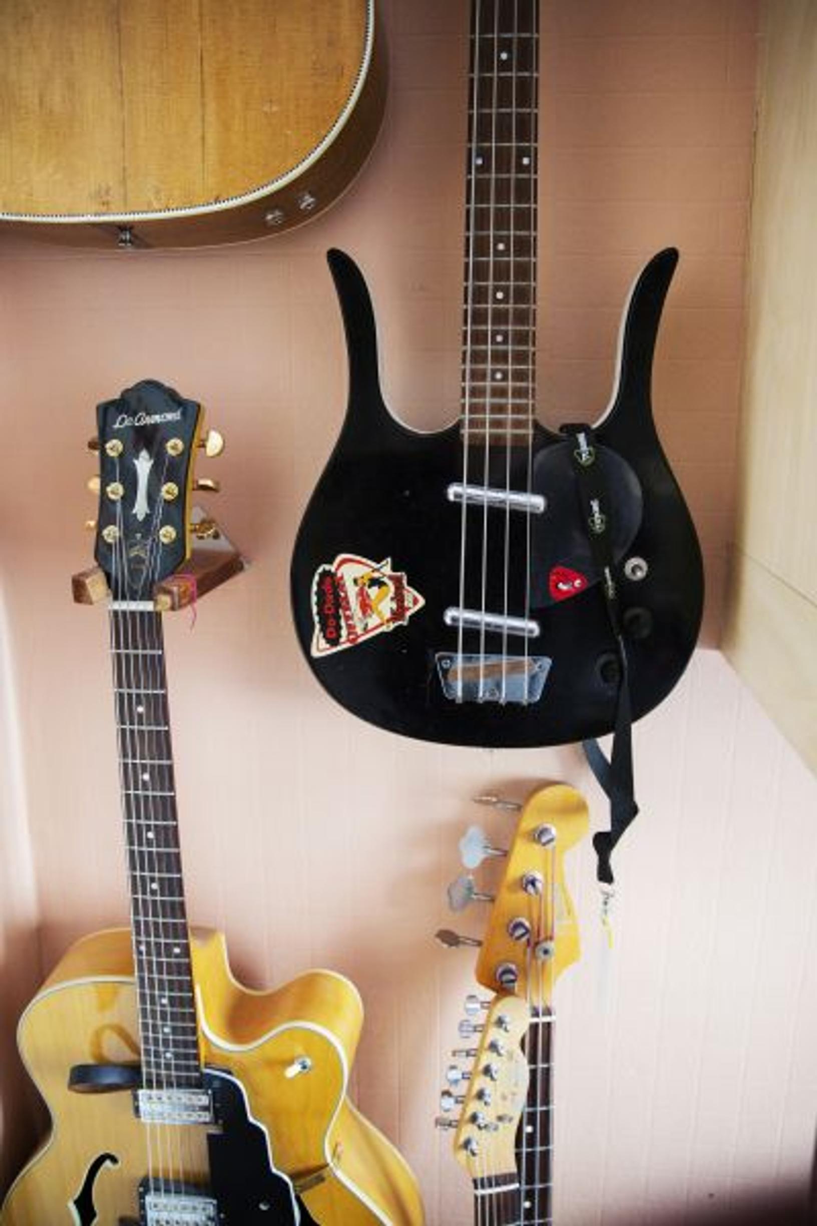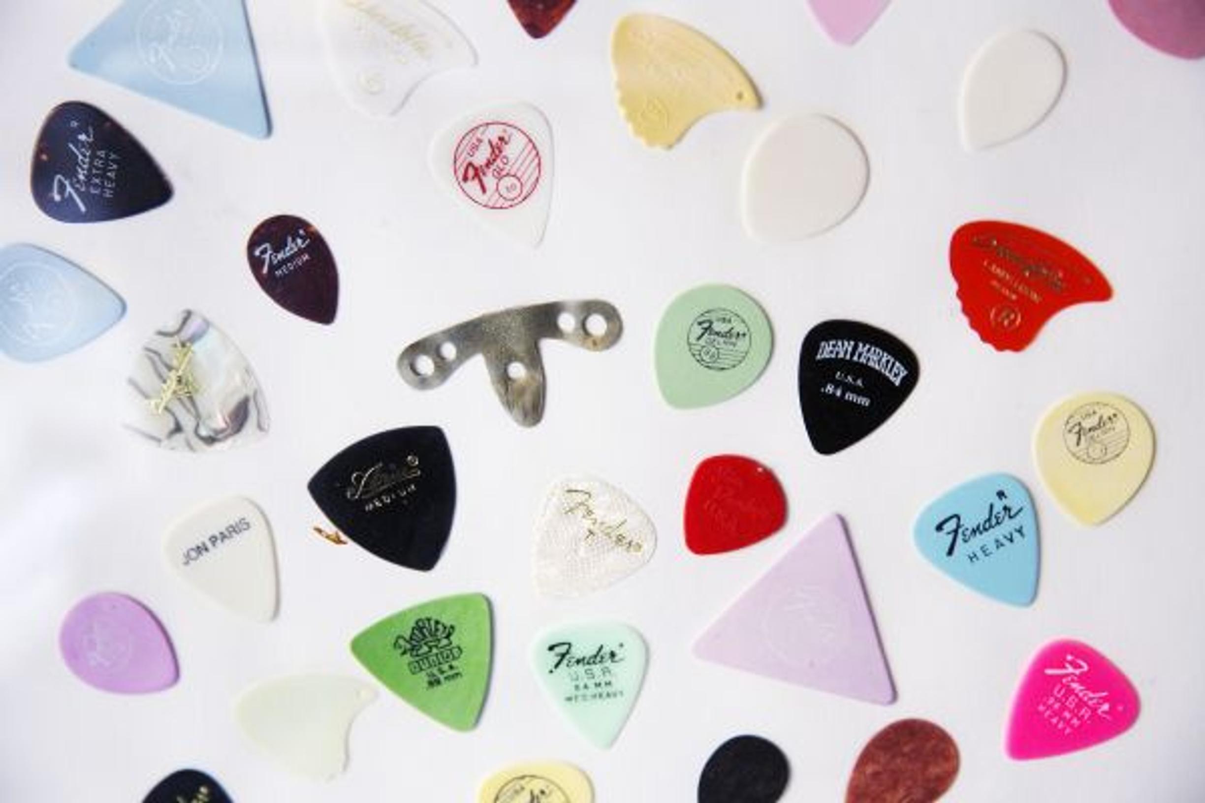 Työhuoneen kunnioitettavat lp- ja cd-levykokoelmat, kitarat seinällä sekä omilta pojilta, Pekalta ja Jukalta, 50-vuotislahjaksi saatu viidenkymmenen plektran sommitelmataulu paljastavat, millaisista aineksista Jussi Raittisen elämä on koostunut.