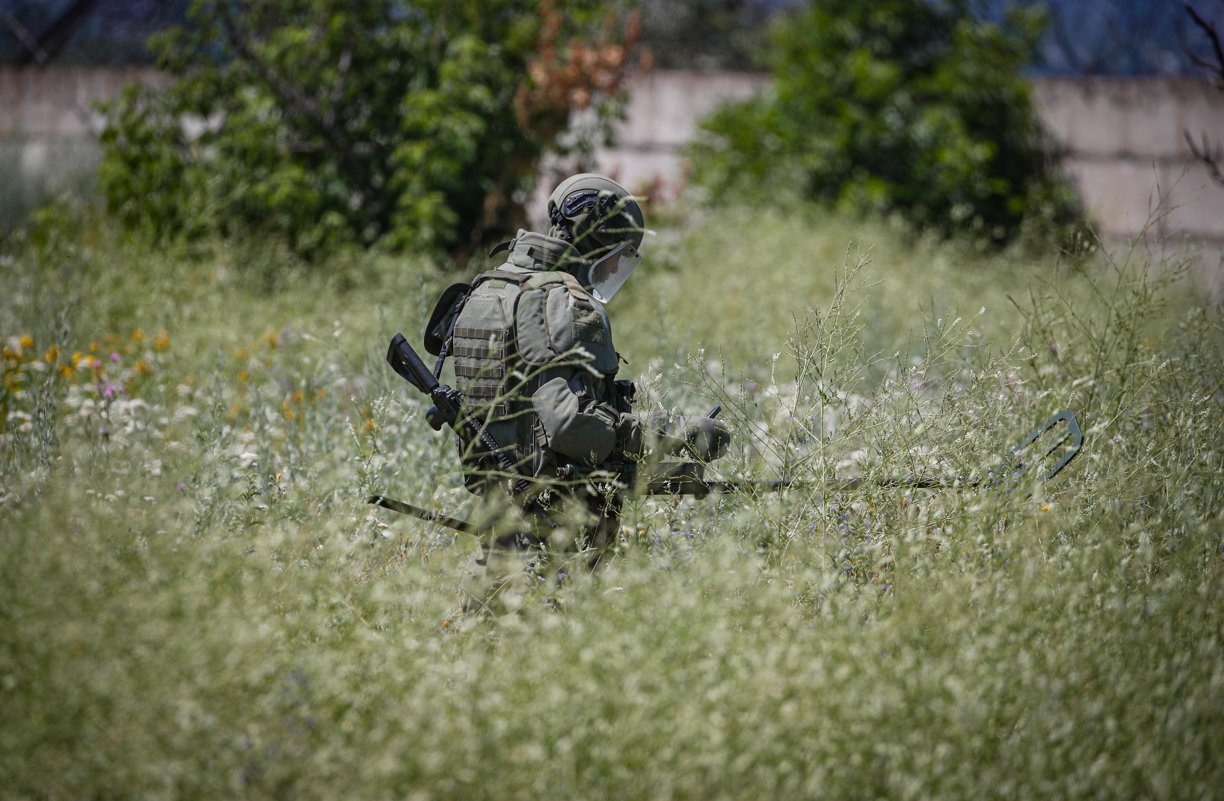 Miinanraivaaja Venäjän miehittämässä Mariupolissa 13.7.2022.