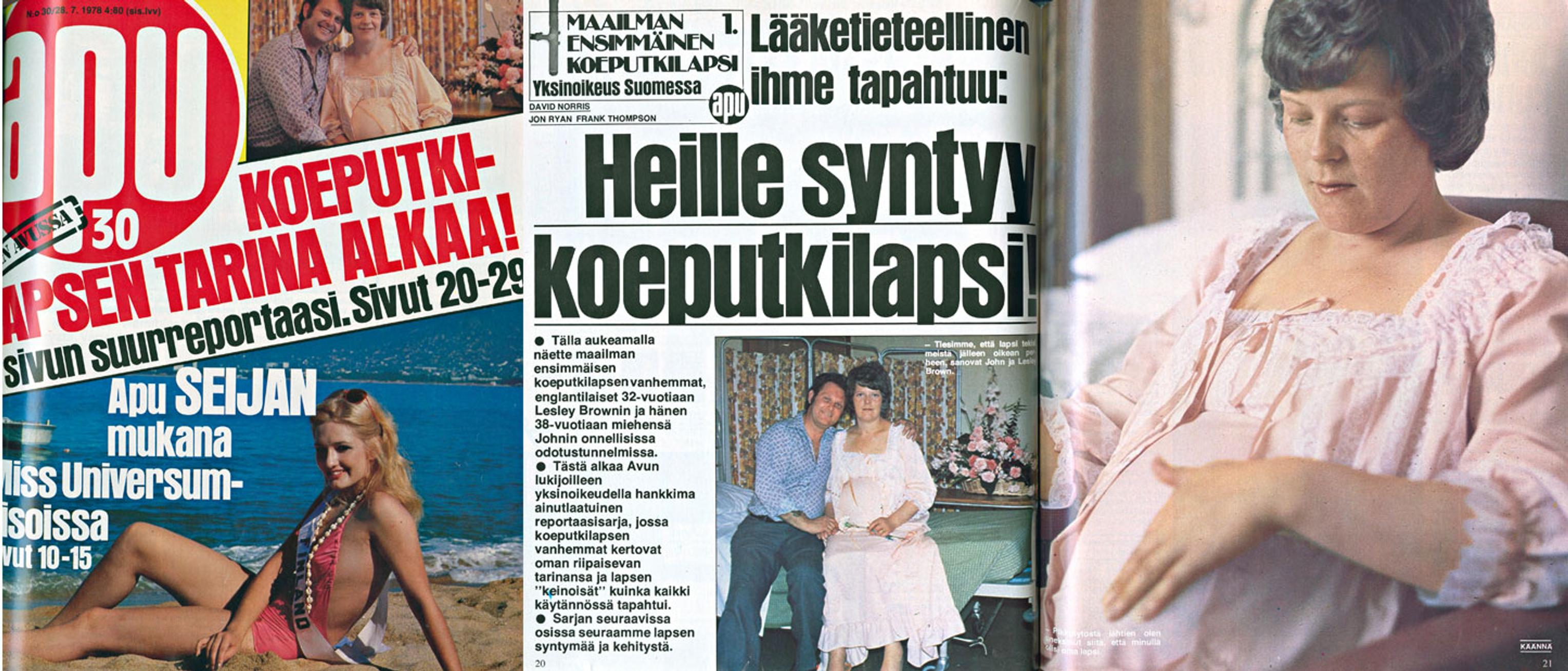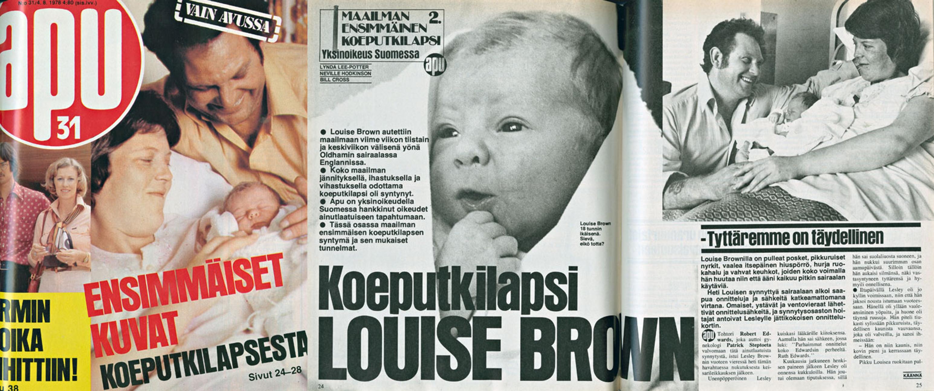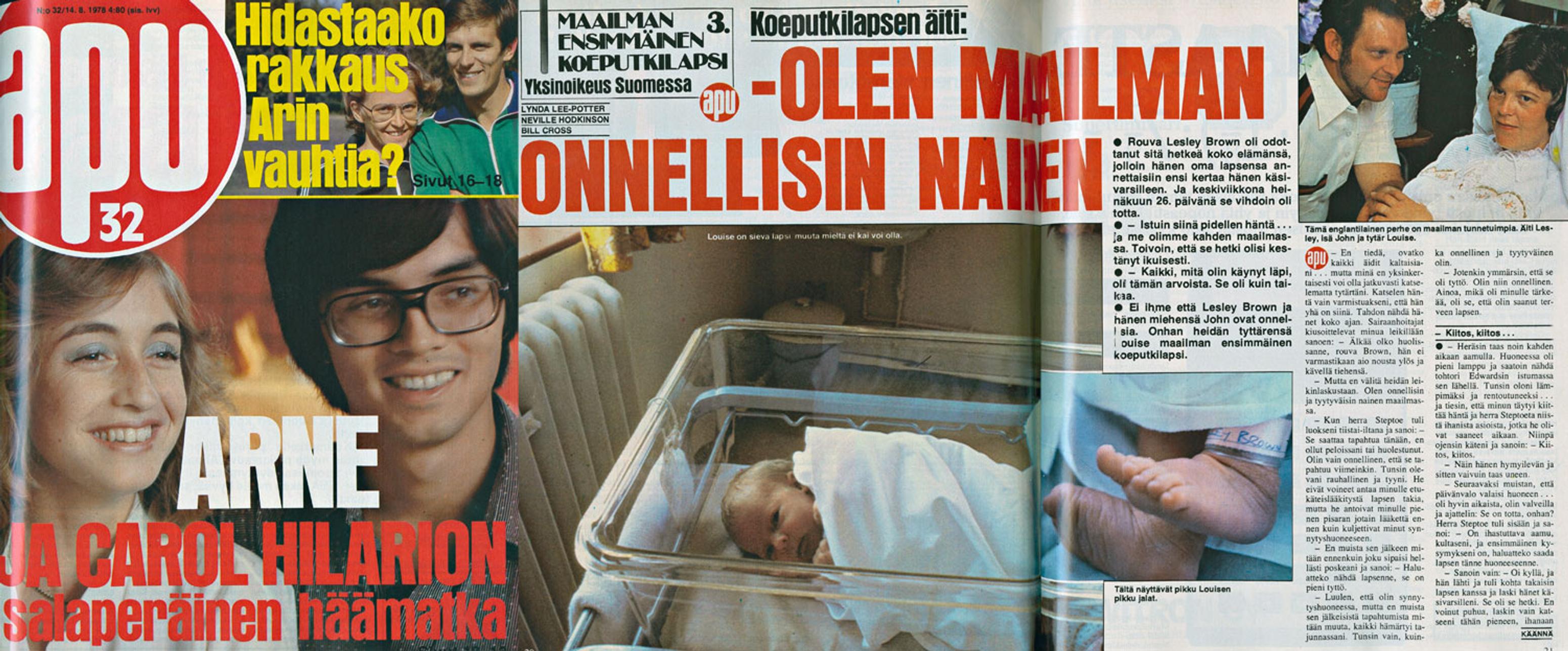 Louise Brownista tulee ihmiskunnan ensimmäinen koeputkilapsi 25. heinäkuuta 1978. Apu kertoi tarinan tuoreeltaan Suomen-yksinoikeudella numeroissa 30–32/1978:
