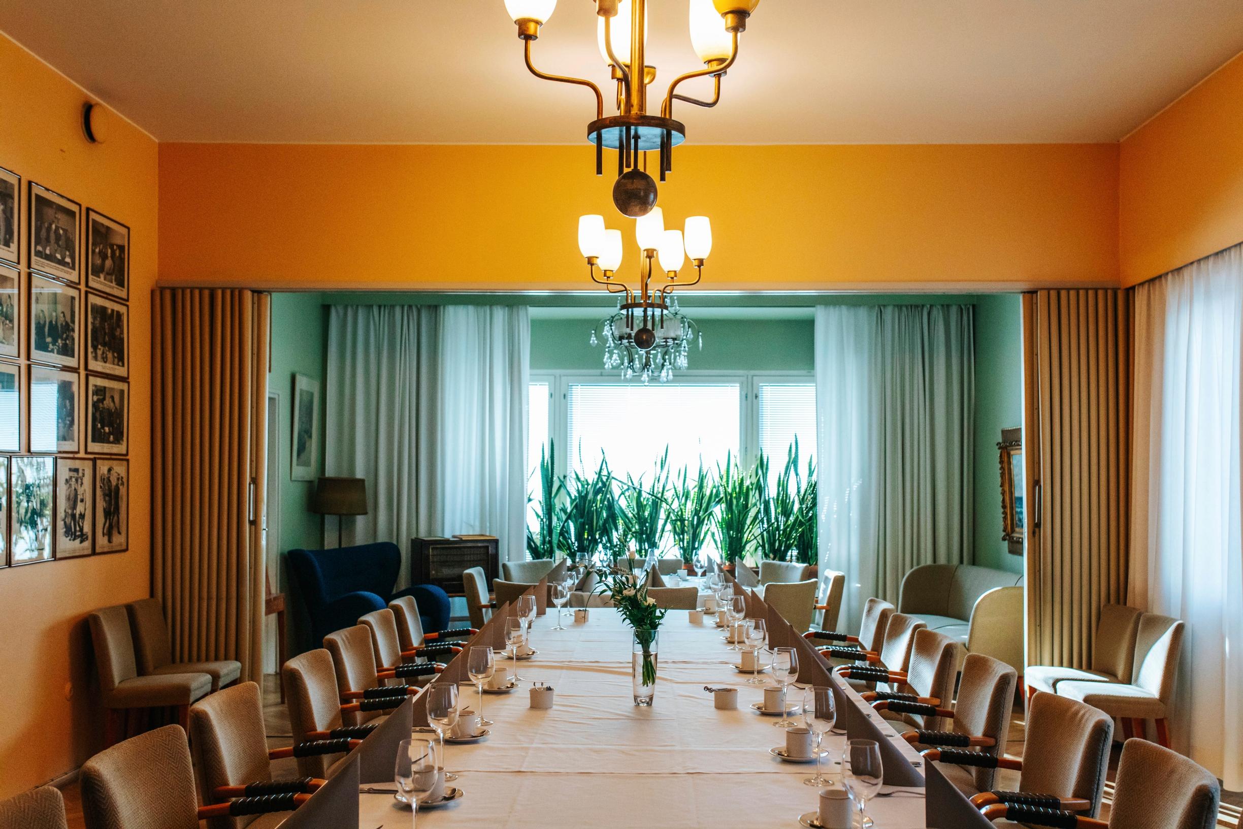 Suorakulmion muotoinen iso ruoka- ja oleskelusali on Paavo Tynellin suunnittelemine valaisimineen ja Artekin tuoleineen tismalleen samannäköinen kuin marraskuussa 1940. Silloin talvisodan pommituksissa vahingoittunut rakennustyö saatiin päätökseen ja klubi muutti uusiin tiloihin. Seuraavana kesänä syttyi jatkosota. Päämajan Yleisesikunta perustettiin Mikkeliin. Pian ylipäällikkö Mannerheim alkoi ruokailla klubin tiloissa.