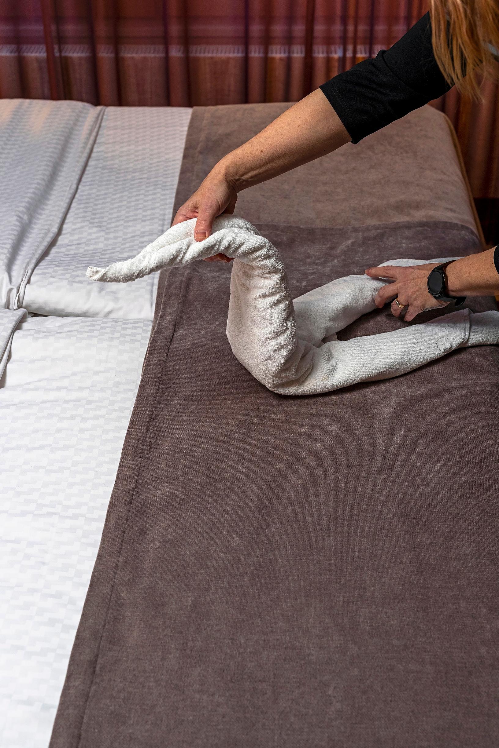 Monissa maissa hotelleilla on tapana ilahduttaa asiakkaitaan sänkyyn tehdyllä joutsenasetelmalla. Näiden ohjeiden avulla luot hauskasti kotiisi hotelliyöpymisen tunnelmaa. Jos haluat oikein yllättää petikaverin, viimeistele tunnelma vaikka suklaamakeisella tyynyn päällä!