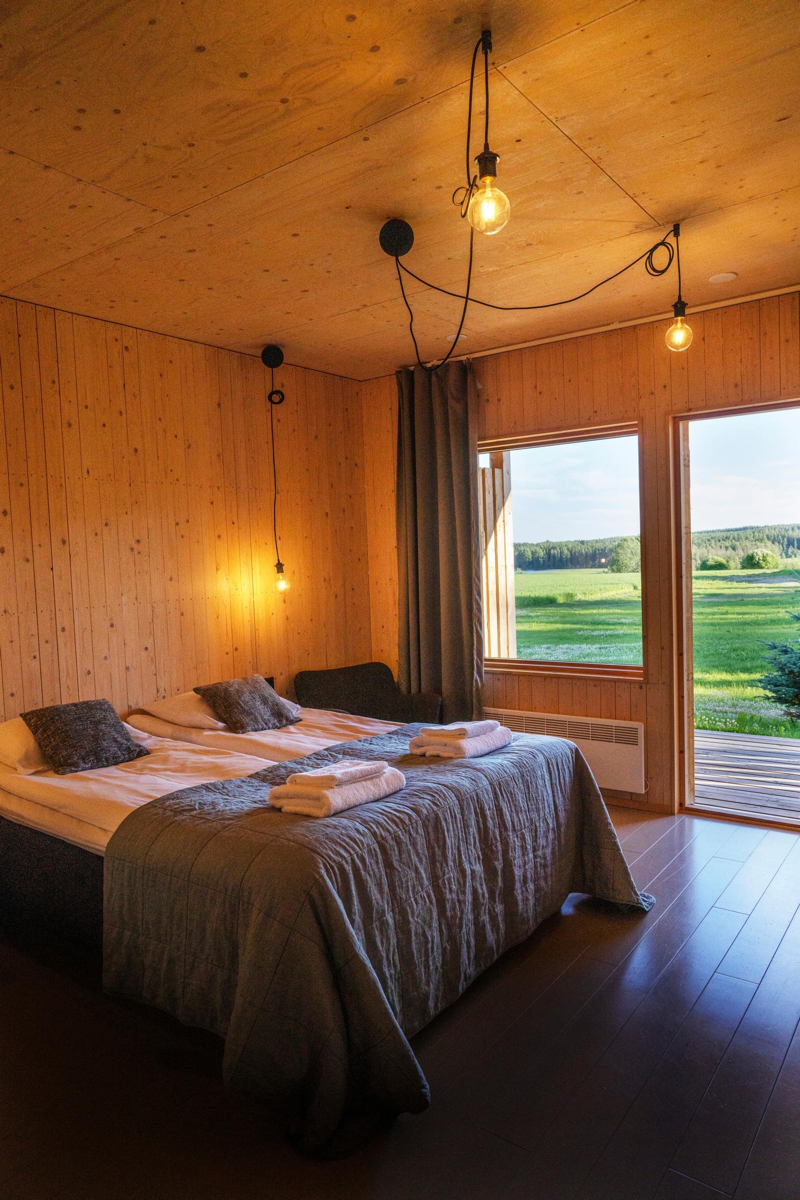 Vau mikä maisema! Paltamossa sijaitsevan Jättiläisenmaan ”birdhouse-huoneiden” ikkunanäkymille ei helposti löydy Suomesta vastinetta. Mökit on rakennettu vaaran laelle, ja edessä avautuu esteetön näkymä niin pitkälle kuin silmä kantaa.