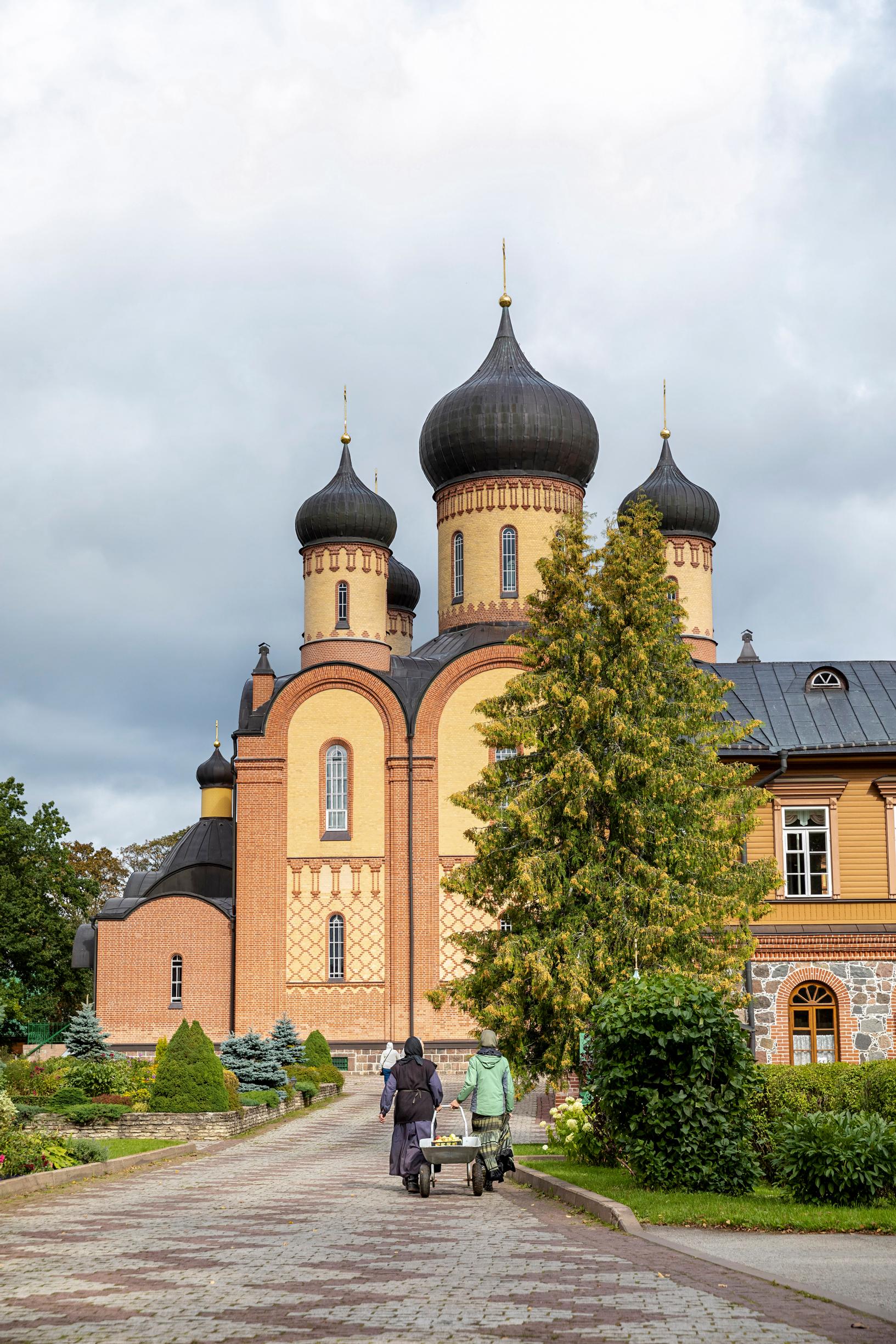 Luostarissa asuu noin 160 nunnaa, ja täällä tapahtuu koko ajan. Vierailuhetkellä puutarhassa korjataan satoa, ja omenoilla täytettyjä kottikärryjä työnnetään pitkin pihamaata.