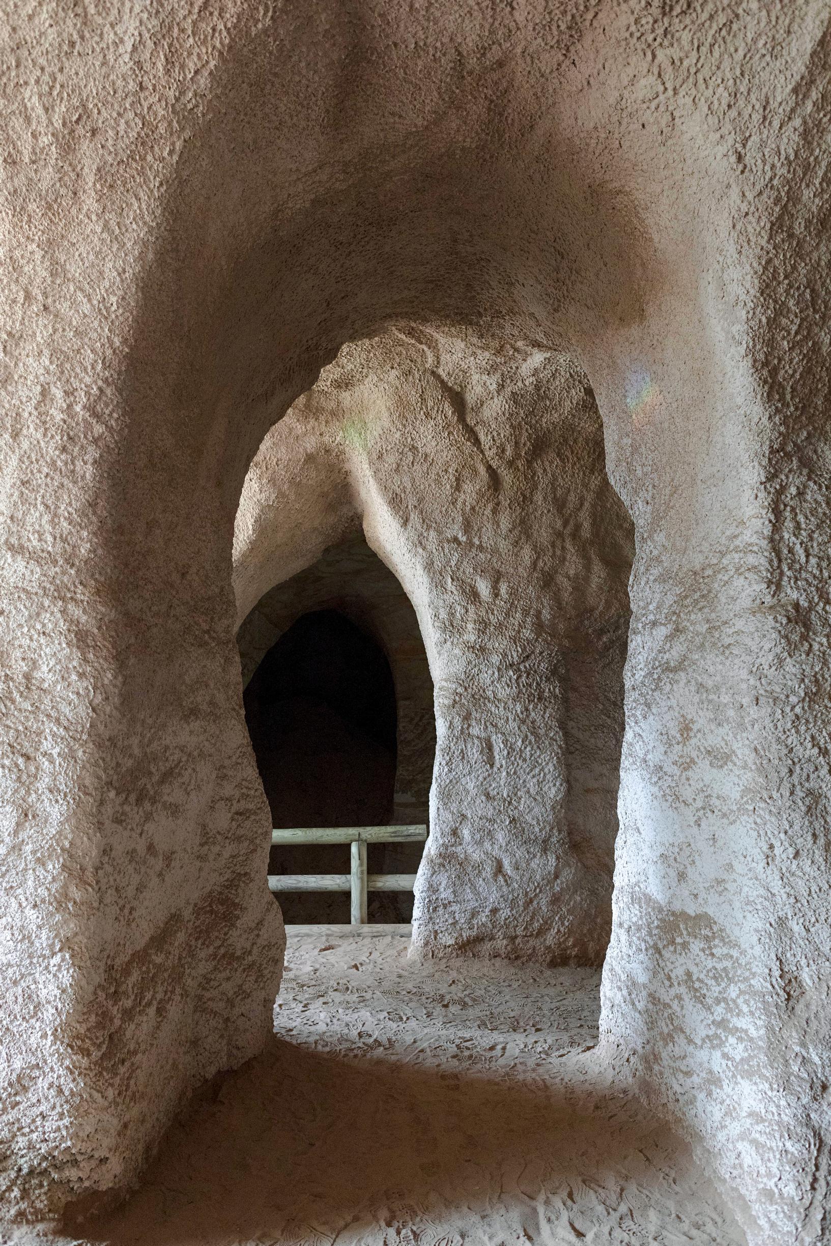 Kylmä ilma iskee päin kasvoja ja imeytyy luihin ja ytimiin. Vaikka ulkona on lämmintä ja aurinkoista, täällä maan alla kesävaatteet eivät riitä. Edessä avautuu hiekkakiveen kaivettu luolasto, jossa holvikattoiset käytävät menevät ristiin rastiin.