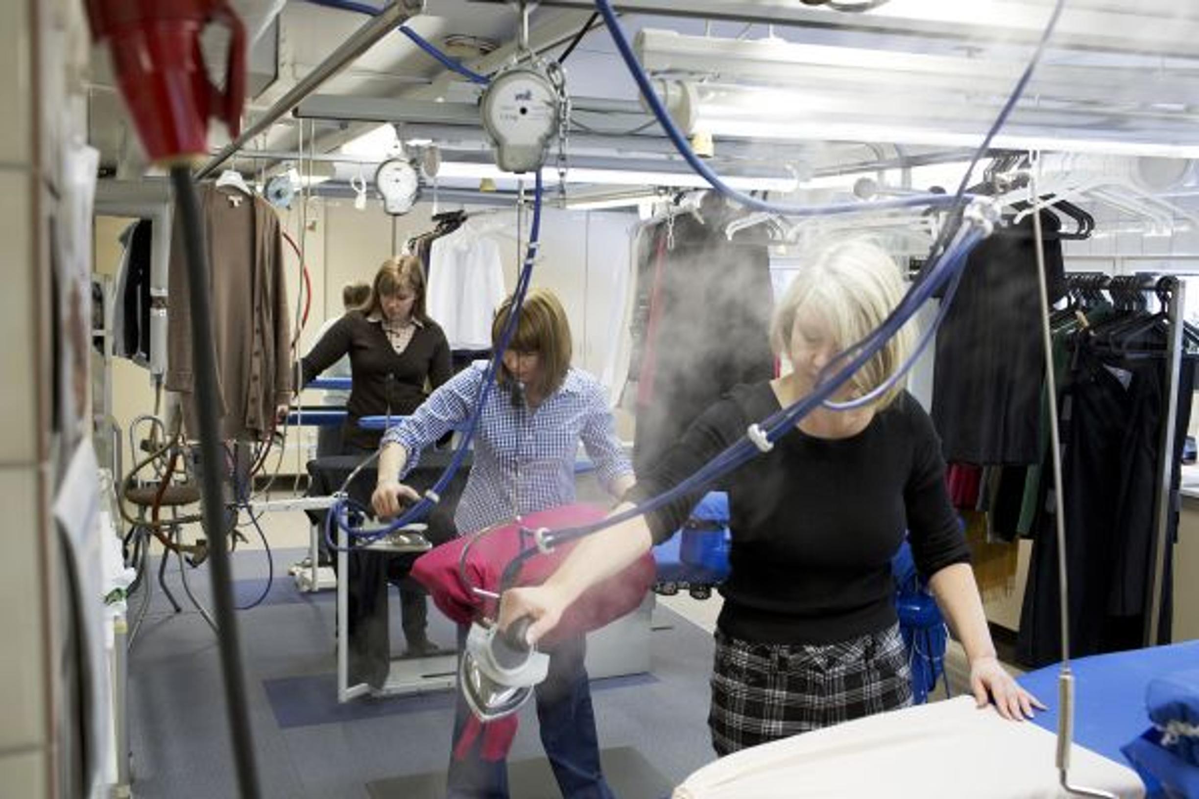 Tauon jälkeen pesulan työntekijät jatkavat hommia. Höyry kohoaa sihahtaen ilmoille, kun Isokoski, Haverinen ja Kaarre alkavat tottuneen näköisesti suihkia silitysraudoilla. Kaarre viikkaa puhtaita vaatteita ja asettelee niitä pinoihin.