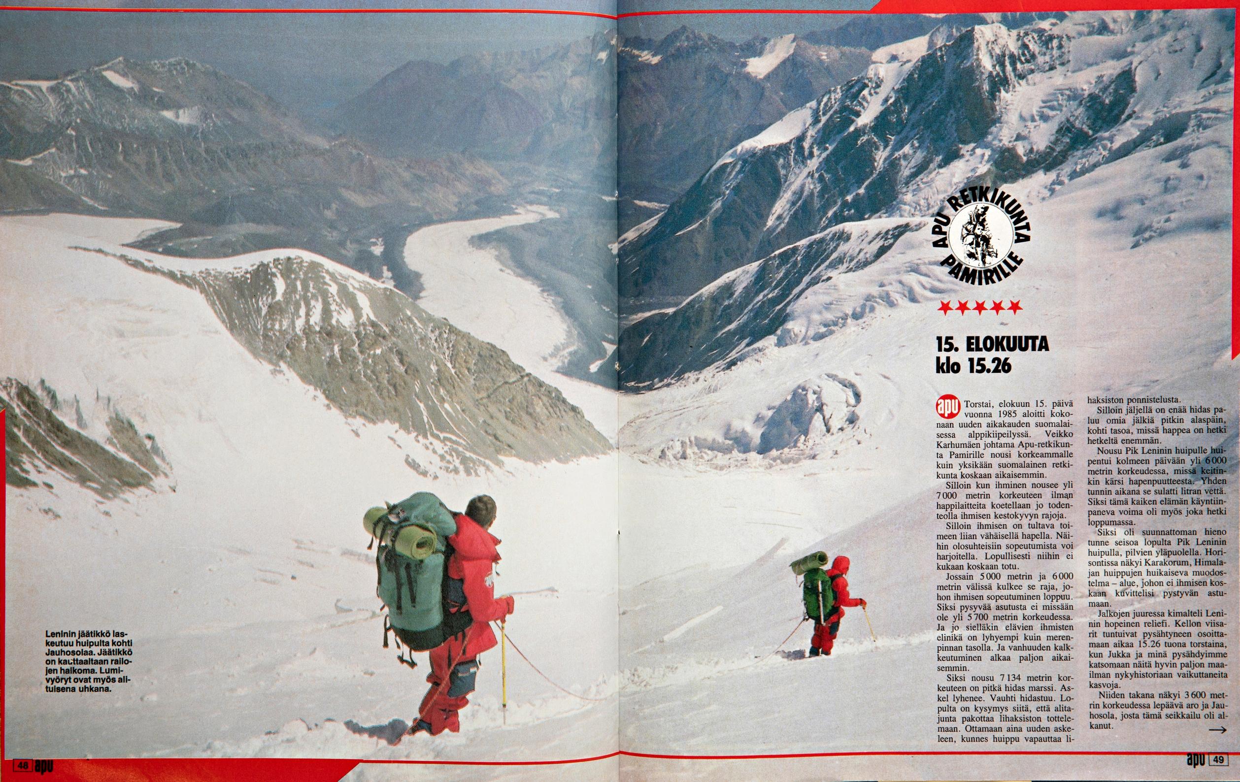 Elokuussa 1985 Apu-retkikunta nousi korkeammalle kuin yksikään suomalainen retkikunta aikaisemmin. 7 134 metriä korkea Pik Lenin sai kohdata voittajansa.
