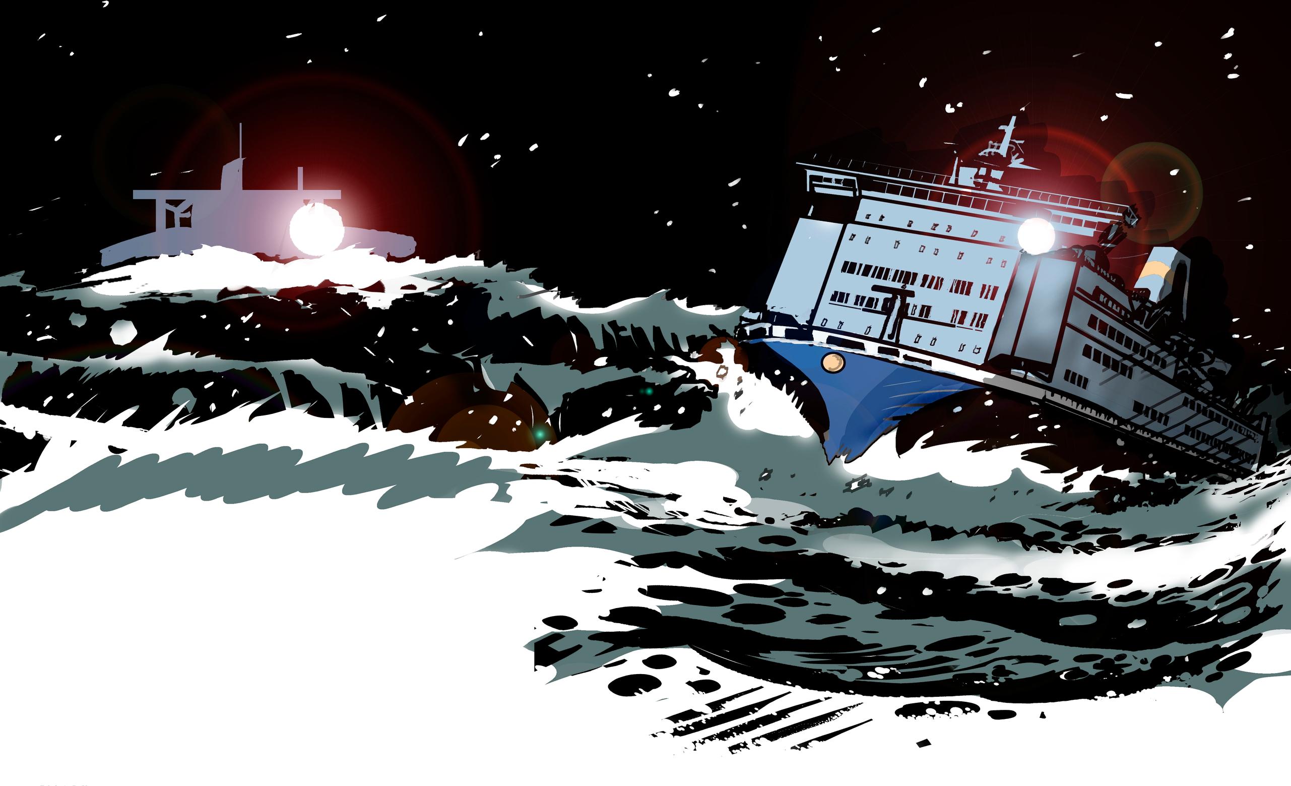 Tankkeri näyttää ensin ohittavan matkustajalautan hiuksenhienosti, mutta sitten etelästä puskeva myrskytuuli painaa lautan kohti tankkerin kylkeä ja repii siihen satametrisen haavan. Kuin mustasta Niagarasta syöksyy tankkerista jäyhää nestettä vaaleana vaahtoavaan mereen. Ja se neste ei ole mitään pilssivettä, vaan venäläistä raakaöljyä.