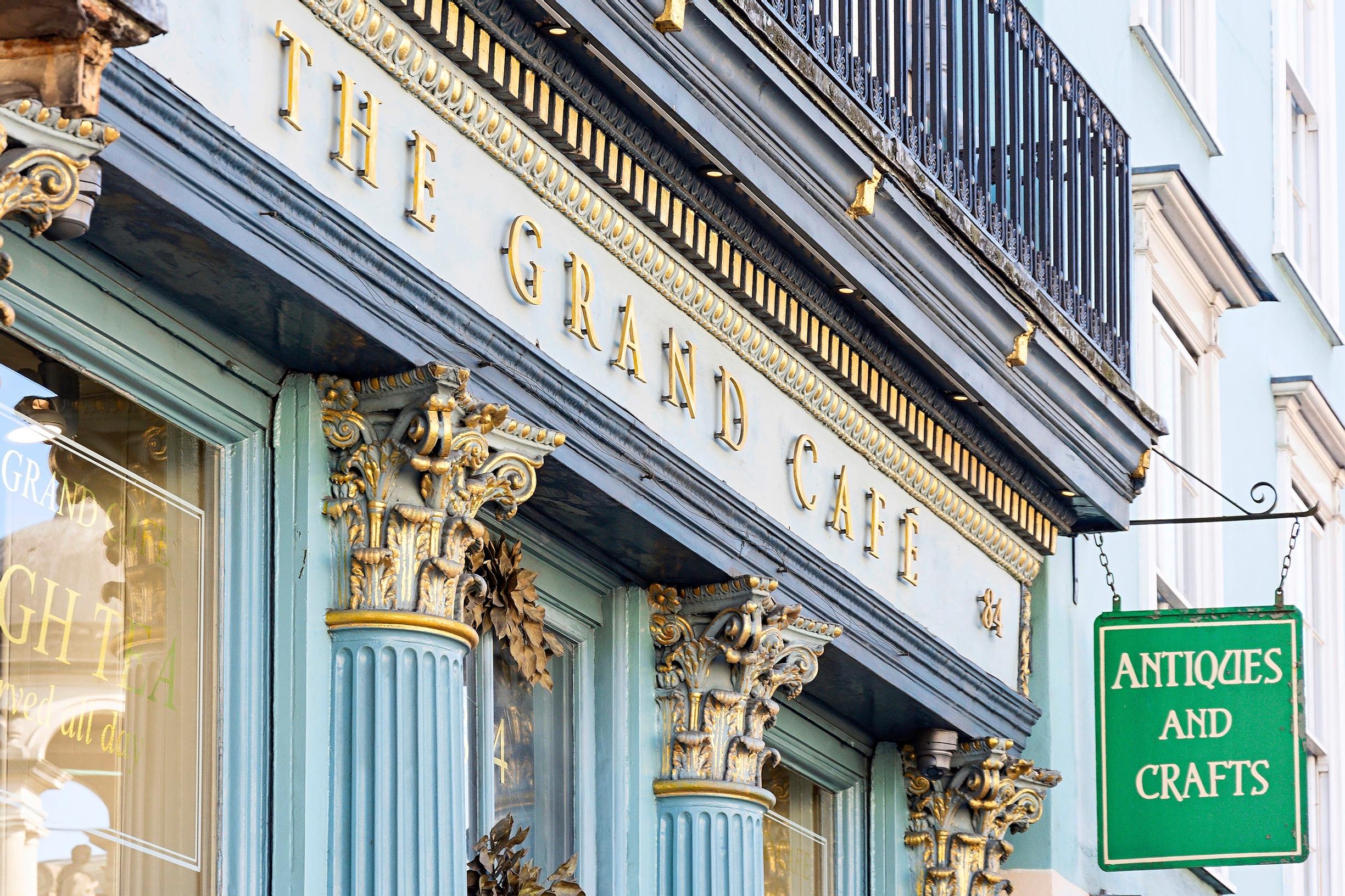 Oxfordin The Grand Café sijaitsee samalla paikalla, jolle Englannin ensimmäinen (ja Euroopan toinen) kahvila perustettiin vuonna 1650. Suuret kultakehyksiset peilit komistavat pienehköä liiketilaa, ja baaritiskin lasikupujen alla on meheviä kakkuja. Kahvimenyy tarjoaa ylellisiä erikoisuuk-sia, kuten Jamaican Blue Mountain -kahvia (noin 7,50 euroa kuppi).