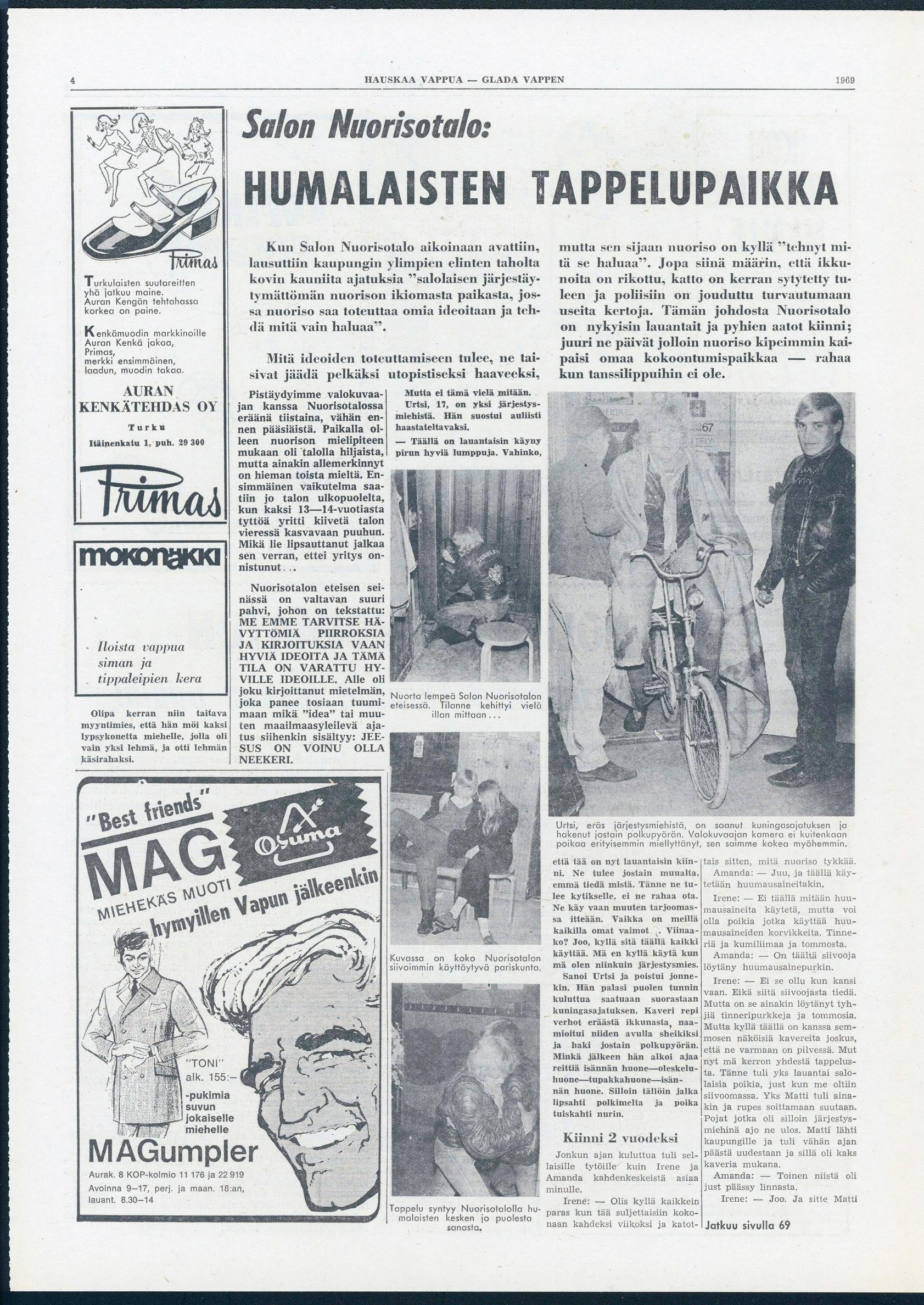 Kun kaiken päälle vielä lisätään nuorison väkevä politisoituminen ja vasemmistoradikalismi, voi yleistää, että 1960-luvun puolivälissä Suomeen ilmaantui parissa vuodessa ensimmäistä kertaa nuoriso sellaisena kulttuurisena ilmiönä kuin sitä sittemmin on tarkasteltu. ●