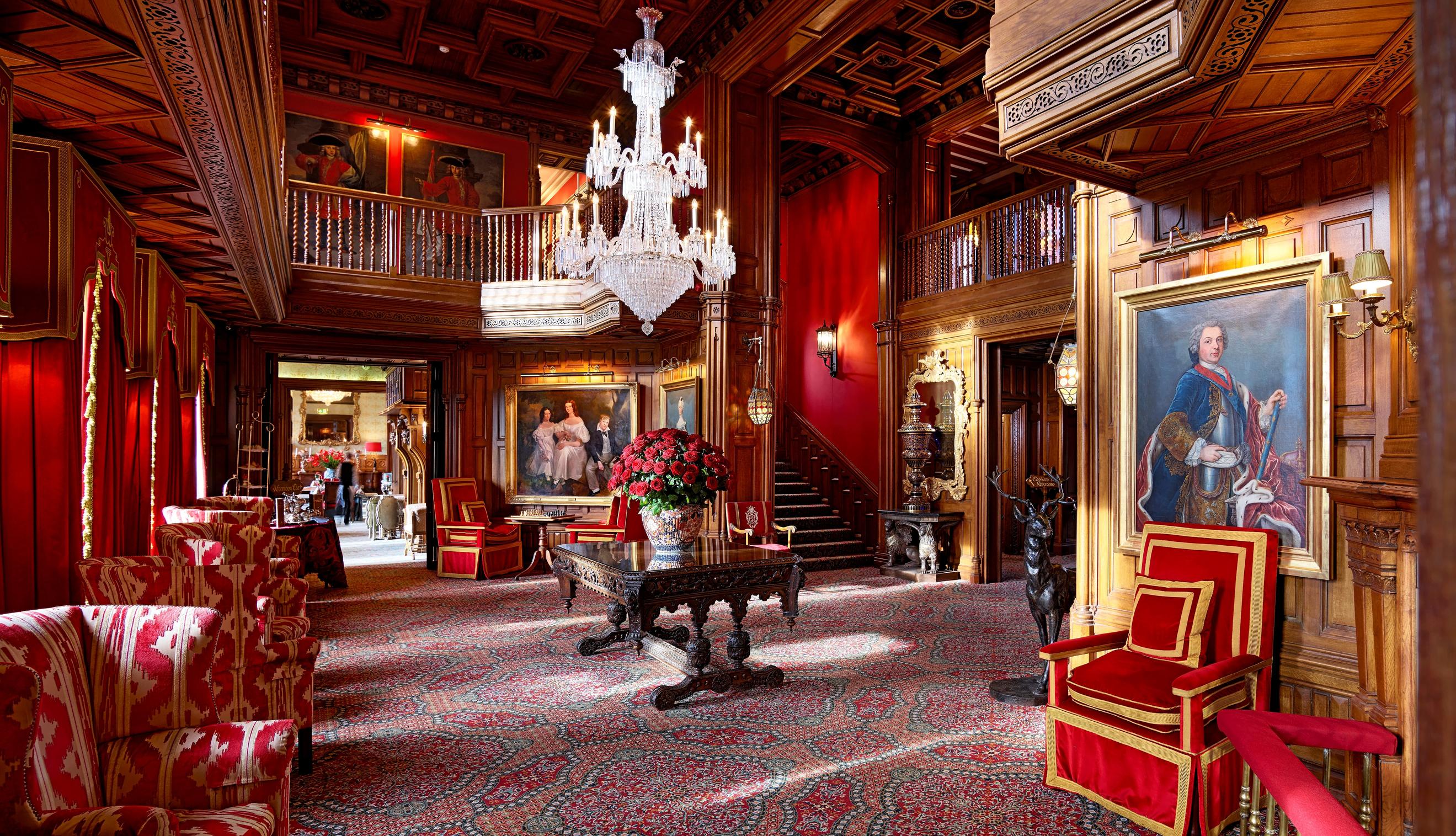 Päätalon sisätilat tarjoavat aimo annoksen yläluokkaista eleganssia. On valtavia takkoja, muhkeita nojatuoleja, mahonkia, tammea, kokolattiamattoa sekä näkymät ruutuikkunoista kauniiseen laaksoon.