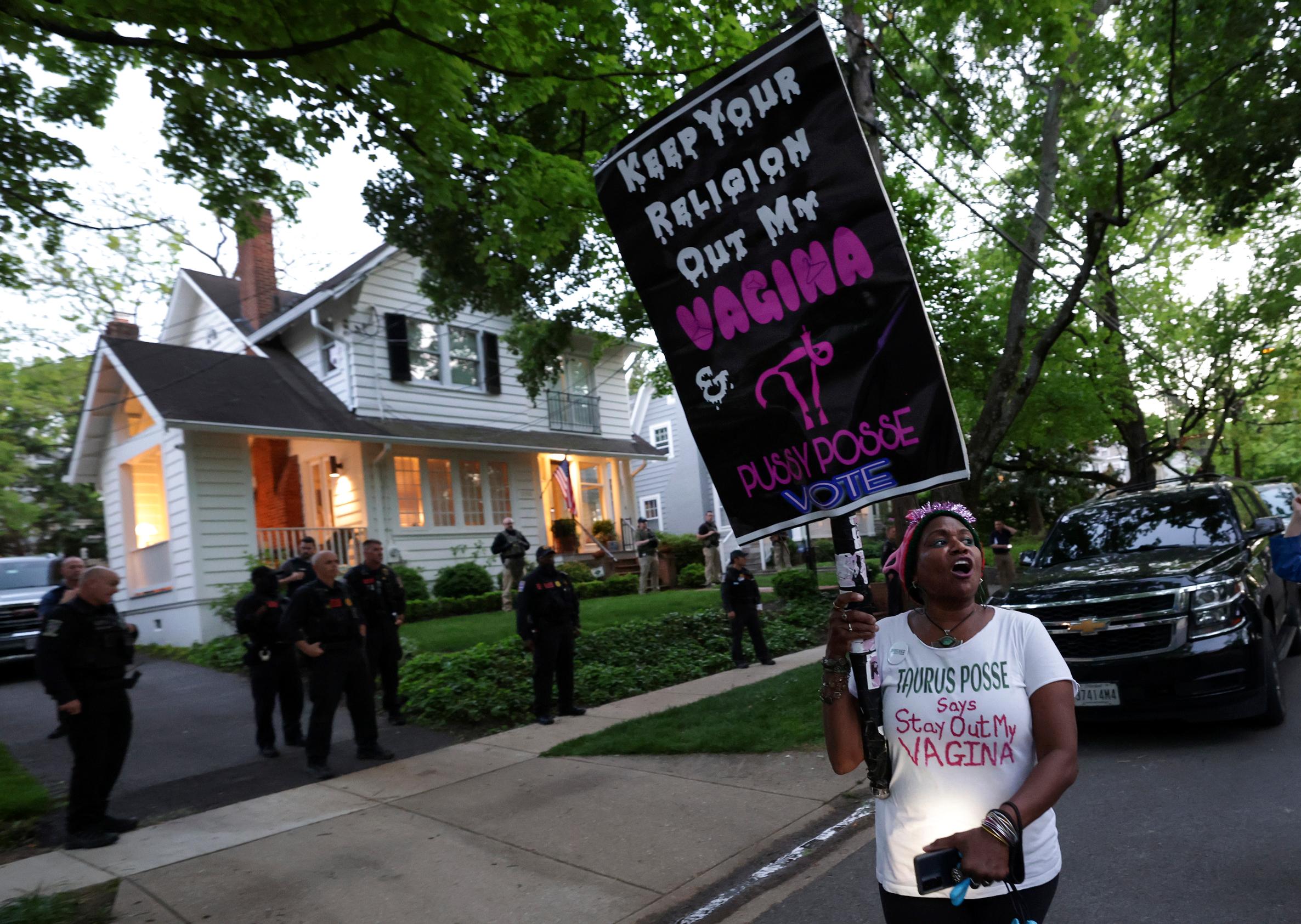 Jotkut republikaanit ovat tulkinneet, että korkeimman oikeuden tuomarien kotien edessä mielenosoittaminen rikkoisi lakia.