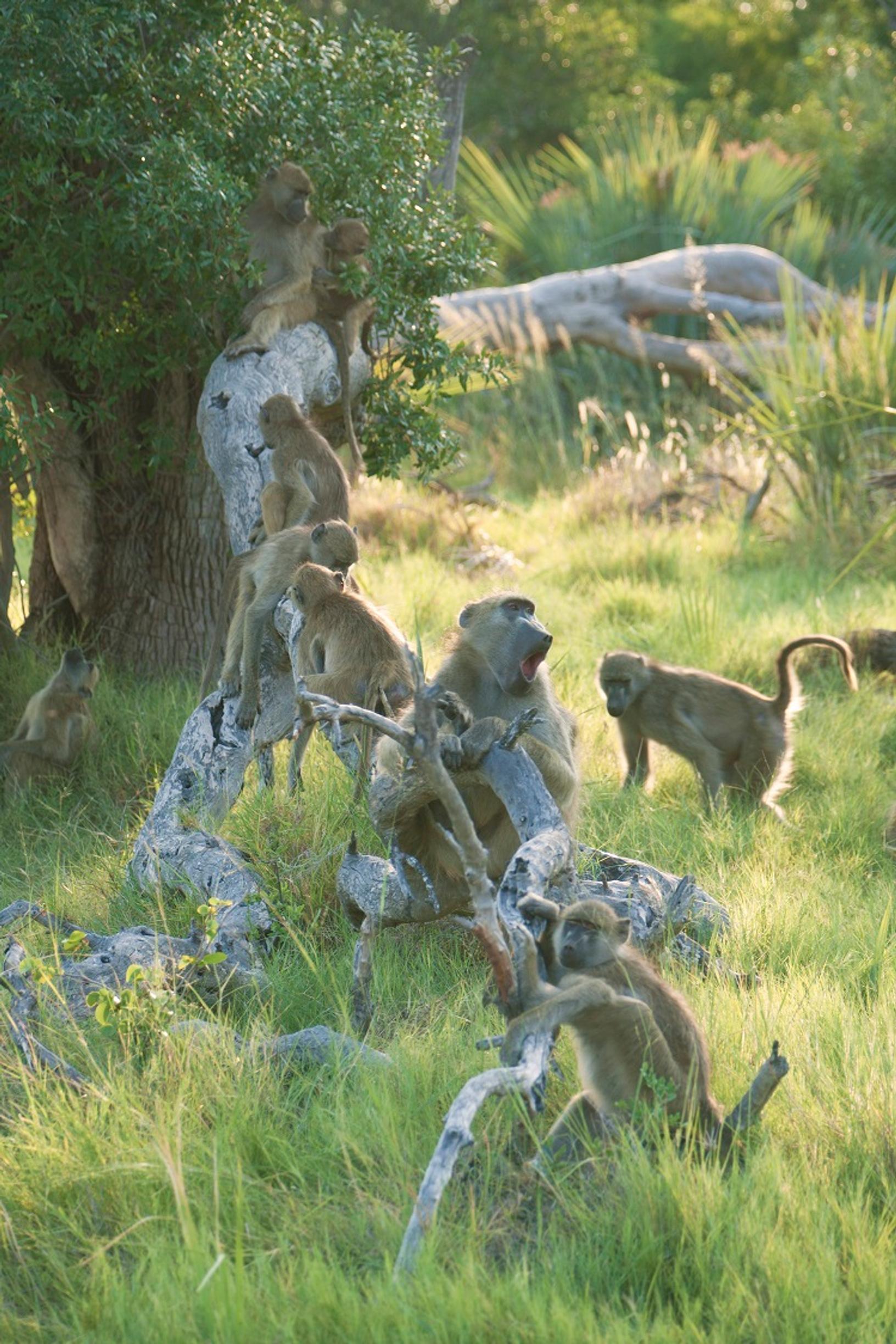 Opimme bongaamaan eläimet, joita täällä Okavangon suiston laajalla alueella näkee helposti. Ketteriä impala-antilooppeja on joka puolella. Seeproja, kirahveja, paviaaneja ja tietysti norsuja löytyy. Lintuja riittää kymmenittäin, isoista ja valkopäisistä Afrikan kalakotkista moniin liitäjiin, joita emme huomaa ennen kuin oppaamme lausahtaa: tuo värikäs pikku tyyppi tuossa puussa on muuten kuningaskalastajiin kuuluva malakiittikalastaja.