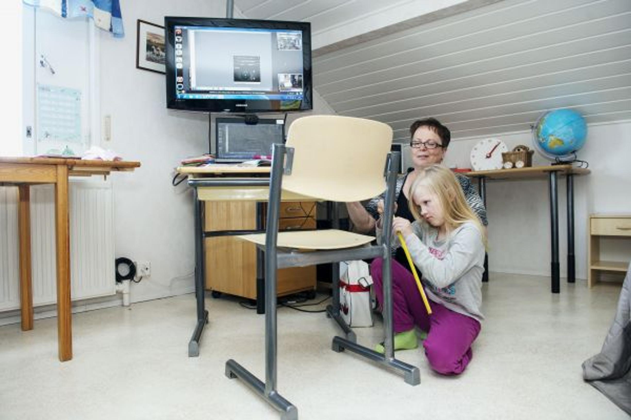 Aino Kantola, 9, käy koulua kahdessa osoitteessa, 75 kilometrin päässä Sallan keskustassa ja kotonaan videoyhteyden välityksellä. Salla tarjoaa mainosti toiminutta videoetäopetusmalliaan vaihtoehdoksi muualle Suomeen.