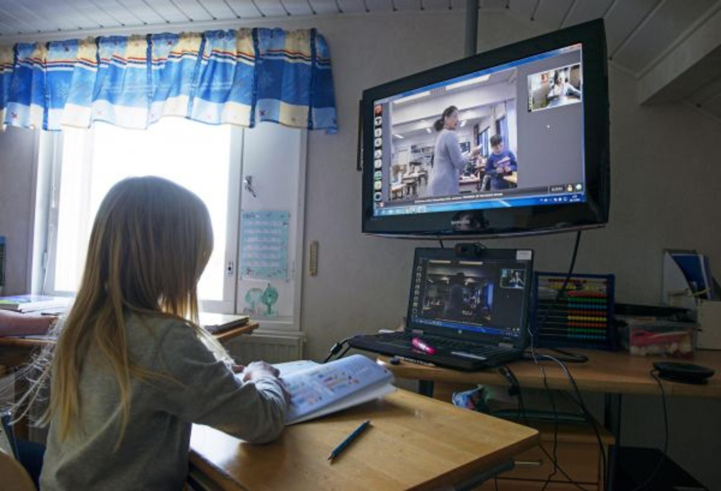 Aino käy koulua videoyhteyden välityksellä Pohjois-Suomessa