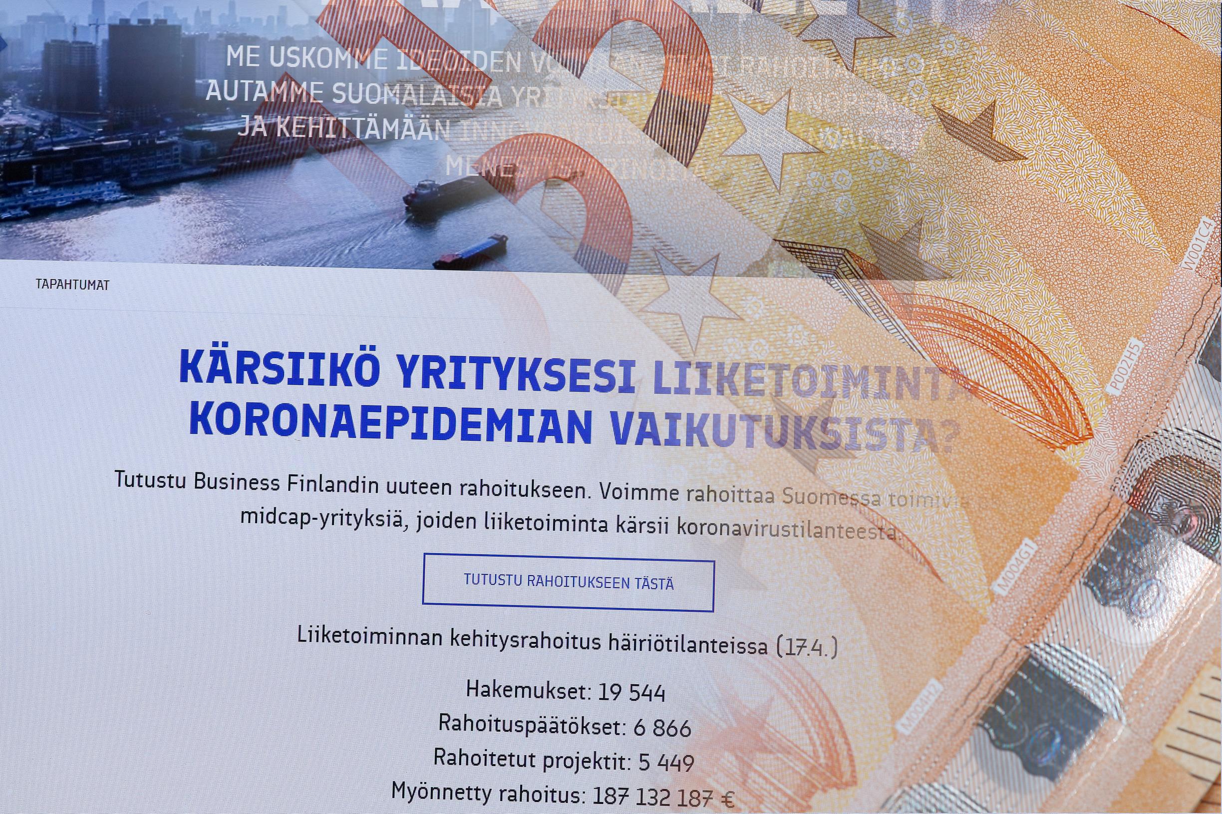 Kun epidemian vakavuus selvisi, hallitus kokosi elinkeinoministeri Mika Lintilän (kesk) johdolla tukipaketin yrityksiä varten. Iso osa tuesta kanavoitiin yrityksille Business Finlandin kautta. Yritykset voisivat hakea rahallista tukea kehityshankkeisiin, mikä osaltaan auttaisi firmoja koronakriisin yli.