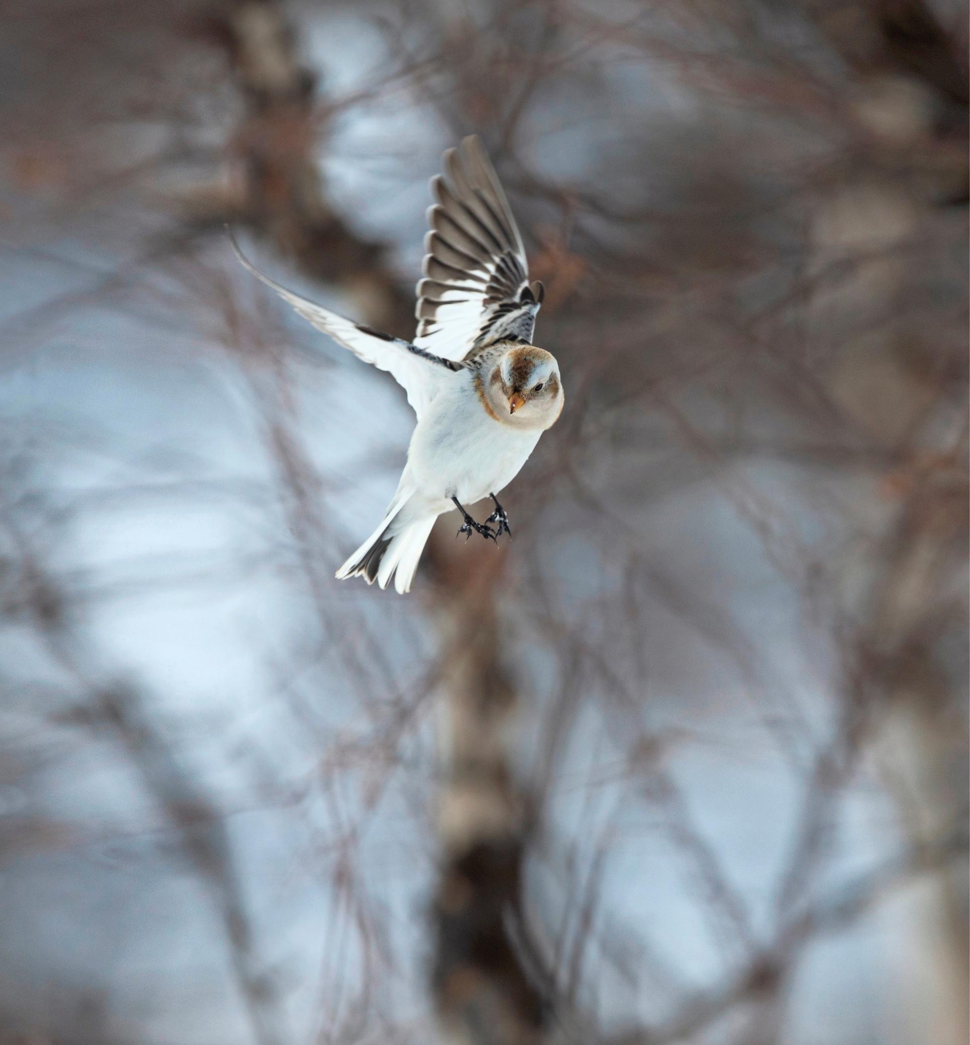 Emme halua turhaan häiritä lintuja, joiden päivä kuluu tunturikoivun varpuja syöden ja pedoilta piileskellessä.