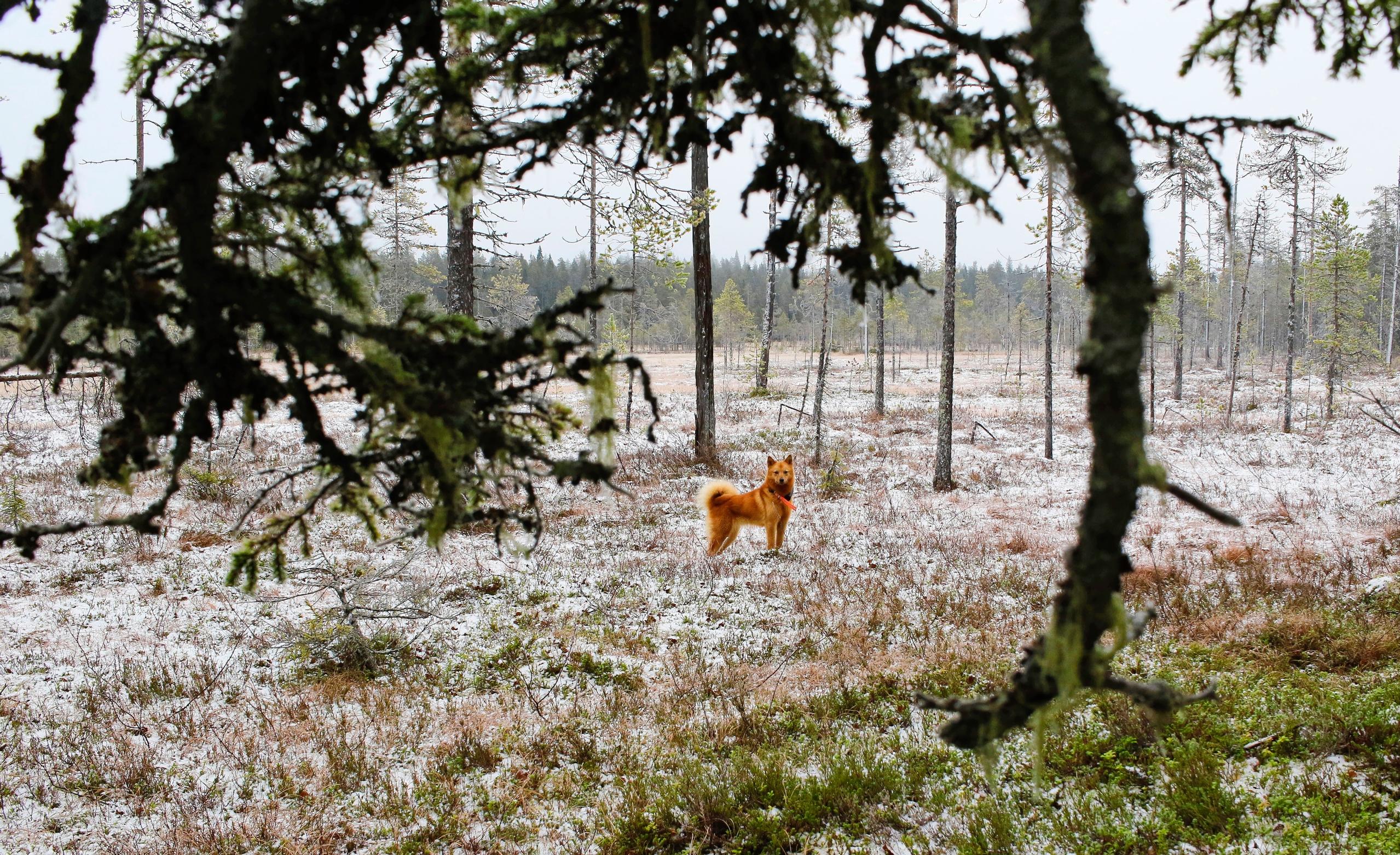Pakkasta on yksi aste ja lunta kuusamolaisessa metsässä vain koristeeksi. Metsäautotien päässä Veltsu päästää molemmat koirat, Lyylin ja sen jälkeläisen, Hillan, ulos autosta. Pakkaamme reppumme ja nostamme aseet selkään.