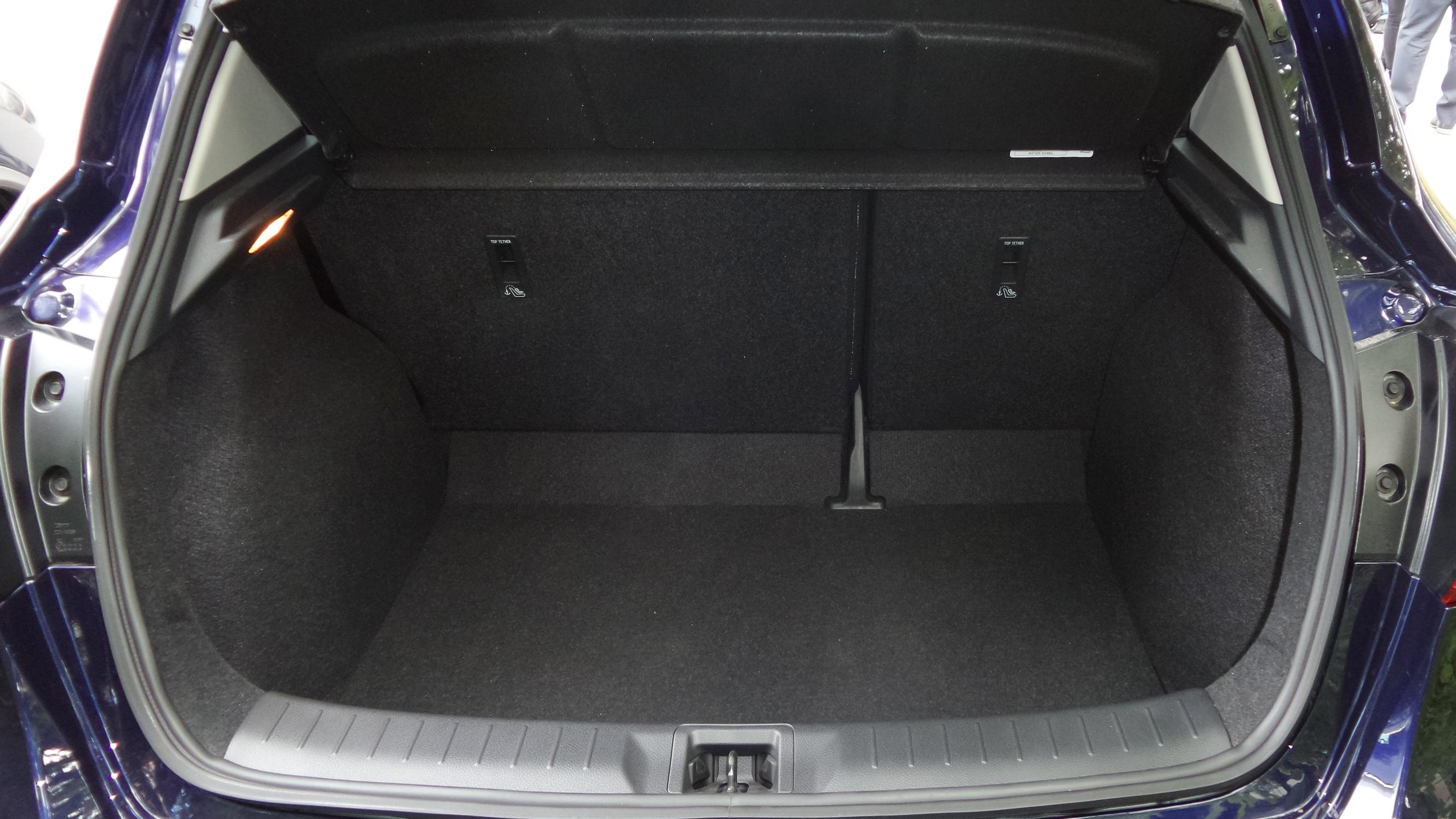 Myös tavaratila on iso, sen vetoisuus on 385 litraa. Nostokynnys on tosin melko korkea, eikä tavaratilassa on välipohjaa. Takapyörien kotelot pyöristävät vielä tilan seinämiä. Takaistuimien selkänojat kaatuvat kahdessa osassa, mutta laajennettu tila ei ole valitettavasti tasapohjainen.