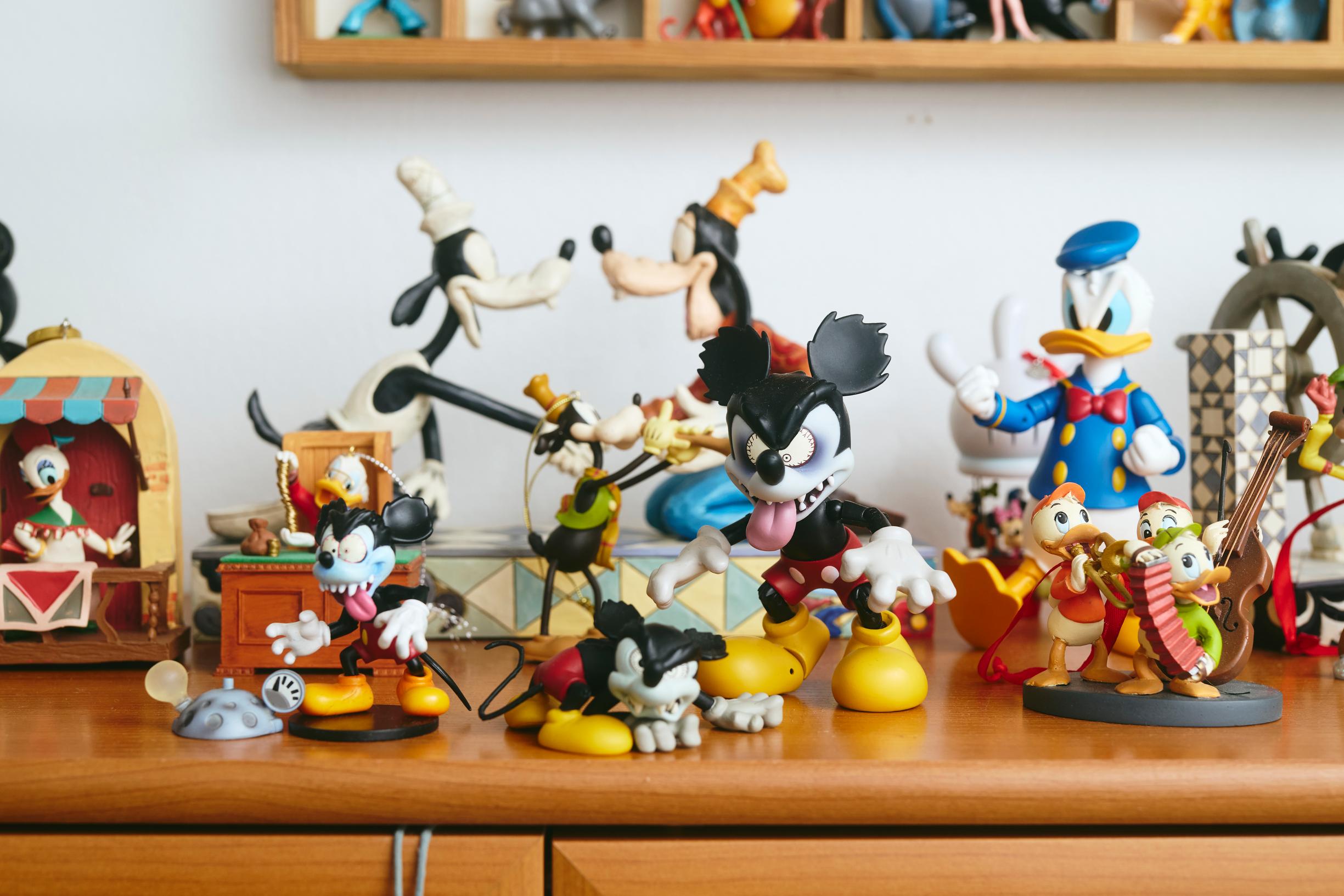 Lempihahmot tulevat miettimättä: Mikki Hiiri, Aku Ankka, Hessu Hopo ja Roope Ankka. Etenkin Hessu- ja Roope-aiheiset esineet kiehtovat Janssonia, sillä niitä on vaikeampaa löytää kuin tutumpia Mikkiä ja Akua. Yksi kokoelman aarteista on vanha Hessu Hopo -puhelin, tietenkin suoraan 1990-luvulta.