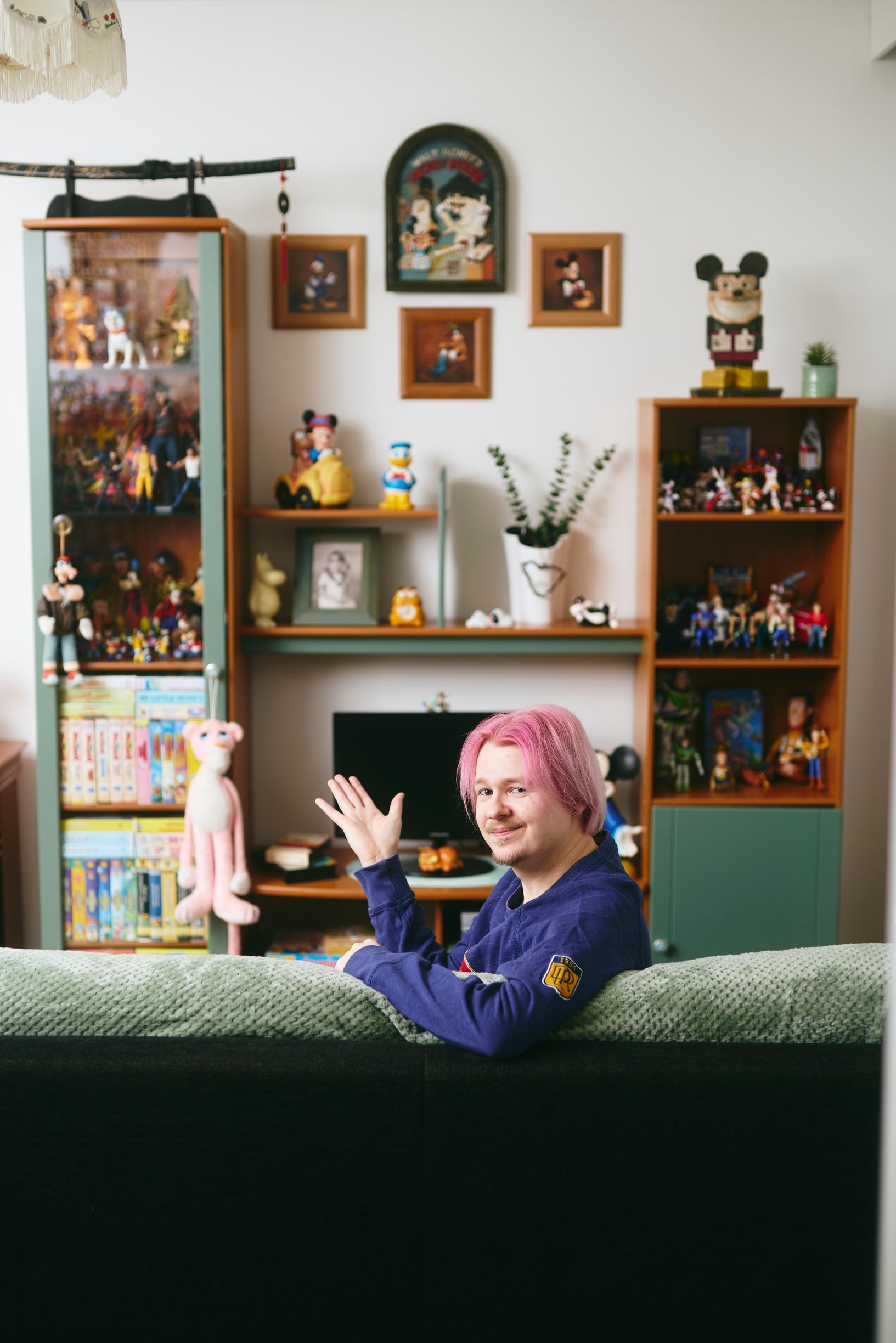 Vielä ennen viime syksyä valtaosa Janssonin figuureista, pehmoleluista ja muista keräilyhahmoista olivat piilossa kaapissa tai pahvilaatikoissa. Kun Jansson muutti eron jälkeen omaan yksiöönsä, hän sai päästää keräilijäluonteensa kunnolla esille.