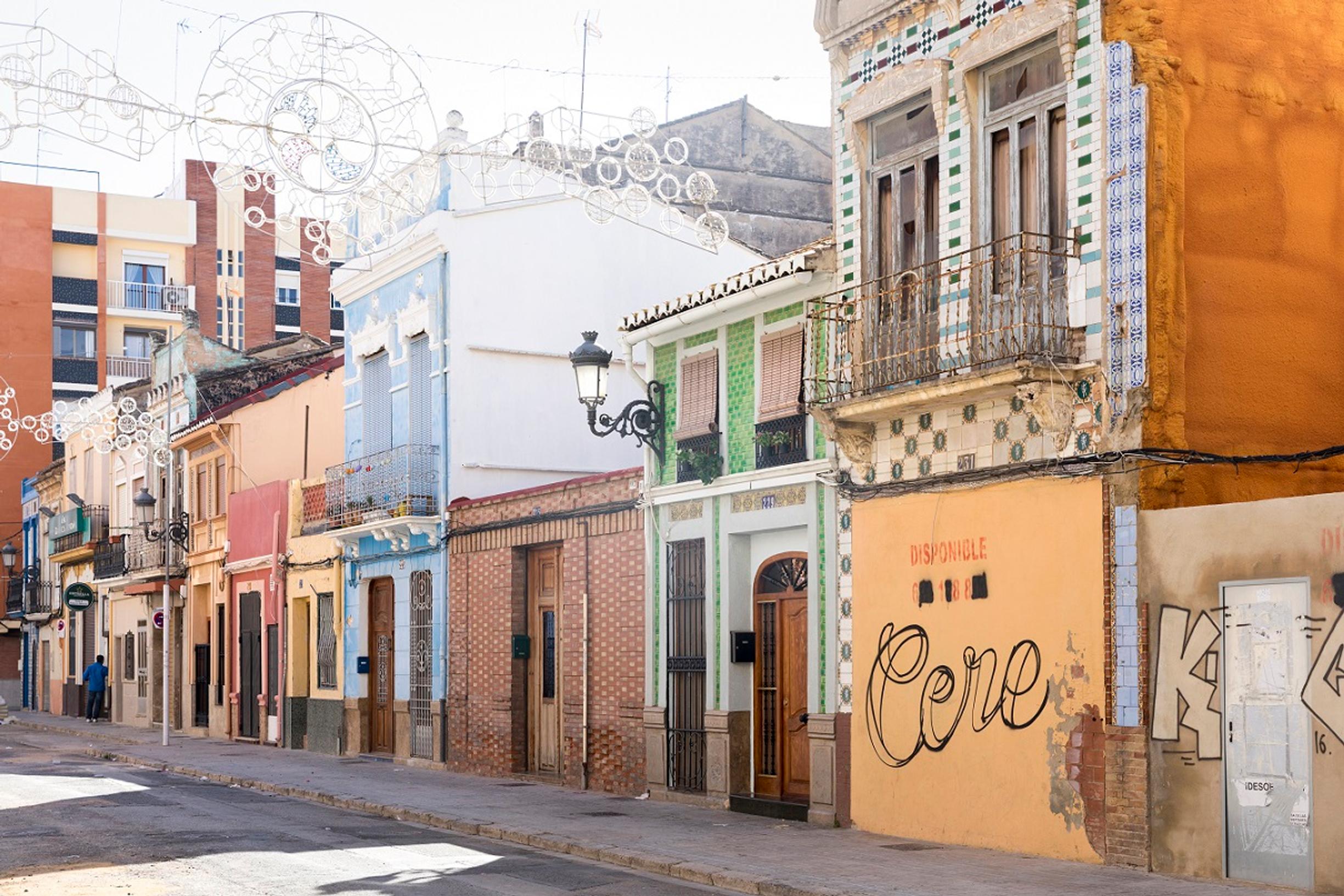 Valencian hallinnossa kiistellään, tulisikö vanhat talot purkaa vai kunnostaa. Siksi jo parin vuoden päästä voi olla myöhäistä tulla tänne arkkitehtuurikierrokselle ihastelemaan ränsistyneitä mutta koristeellisia art nouveau -rakennuksia. Suurin osa niistä on rakennettu 1700-luvun loppupuolella. Monen talon värit ovat haalistuneet auringossa, mutta oikeas¬taan se tekee näkymästä vain viehättävämmän.