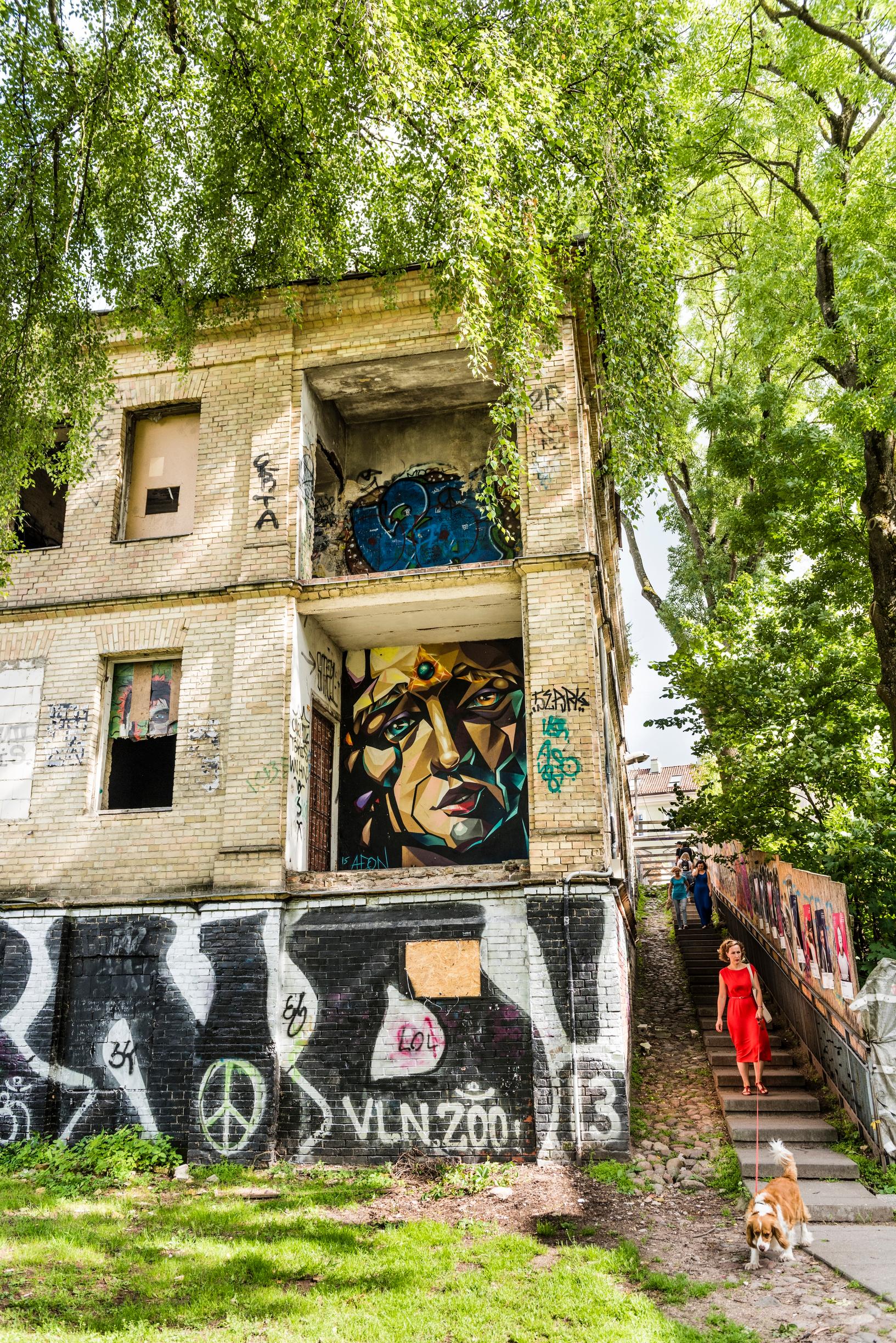 Toisella puolella keskustaa näkyy nykypäivän politiikkaa. Grillibaari Keulė Rūkėn seinään on maalattu parimetrinen muraali, jossa Donald Trump ja Vladimir Putin puhaltavat savua toistensa suuhun. Graffiti todistaa nuorten liettualaisten asenteista maata riuhtovaan voimapolitiikkaan. Teos onkin nousemassa Vilnan toiseksi vaihtoehtonähtävyydeksi Frank Zappan patsaan jälkeen.