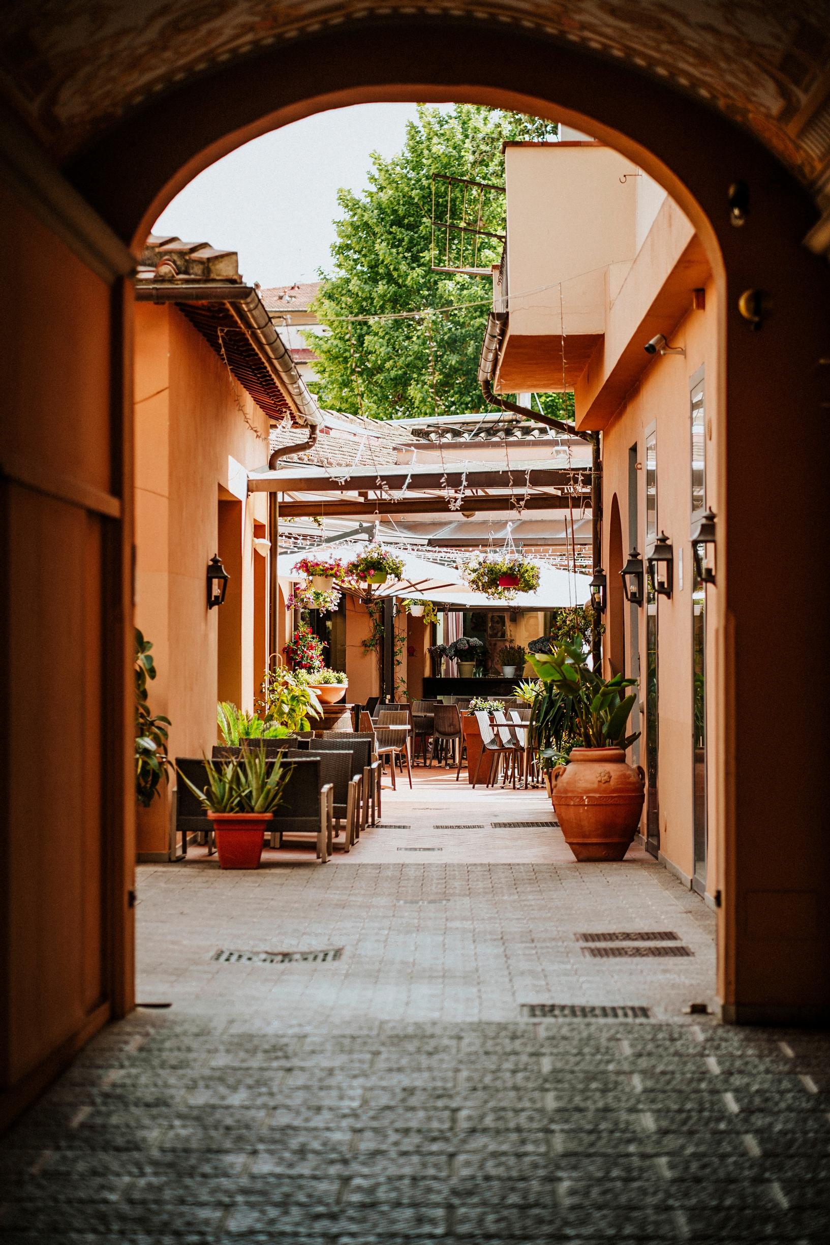 Hyvällä säällä täällä ruokaillaan osittain katetulla pihalla, johon tunnelmaa luovat katosta roikkuvat lamput ja runsaat viherkasvit. Tarjoilija kantaa pöytiin kauniita cocktaileja, ja menyystä löytyy kauden mukaan vaihtelevia italialaisia klassikkoruokia sardellipastasta liha- ja kalatartareihin.