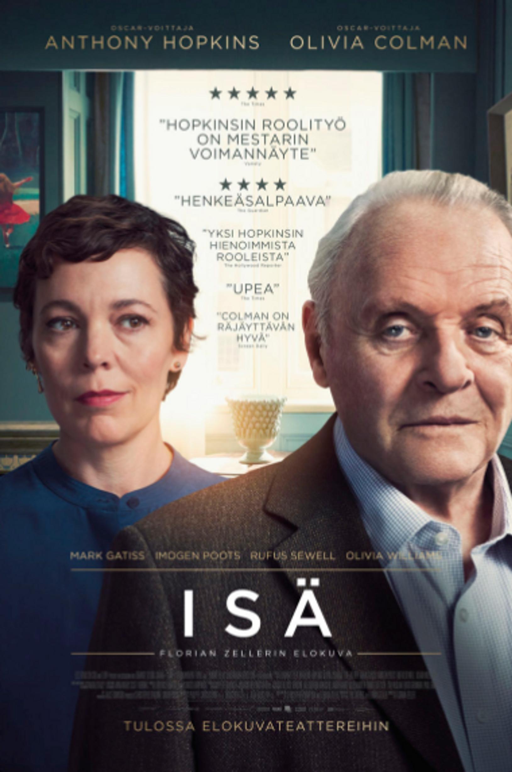 Näin ei Isän tapauksessa käy. Paria kohtausta lukuunottamatta Hopkinsin roolisuoritus palvelee uljaan minimalistisesti Zellerin ja Hamptonin loisteliasta käsikirjoitusta, joka kohottaa elokuvan oman genrensä huipulle.