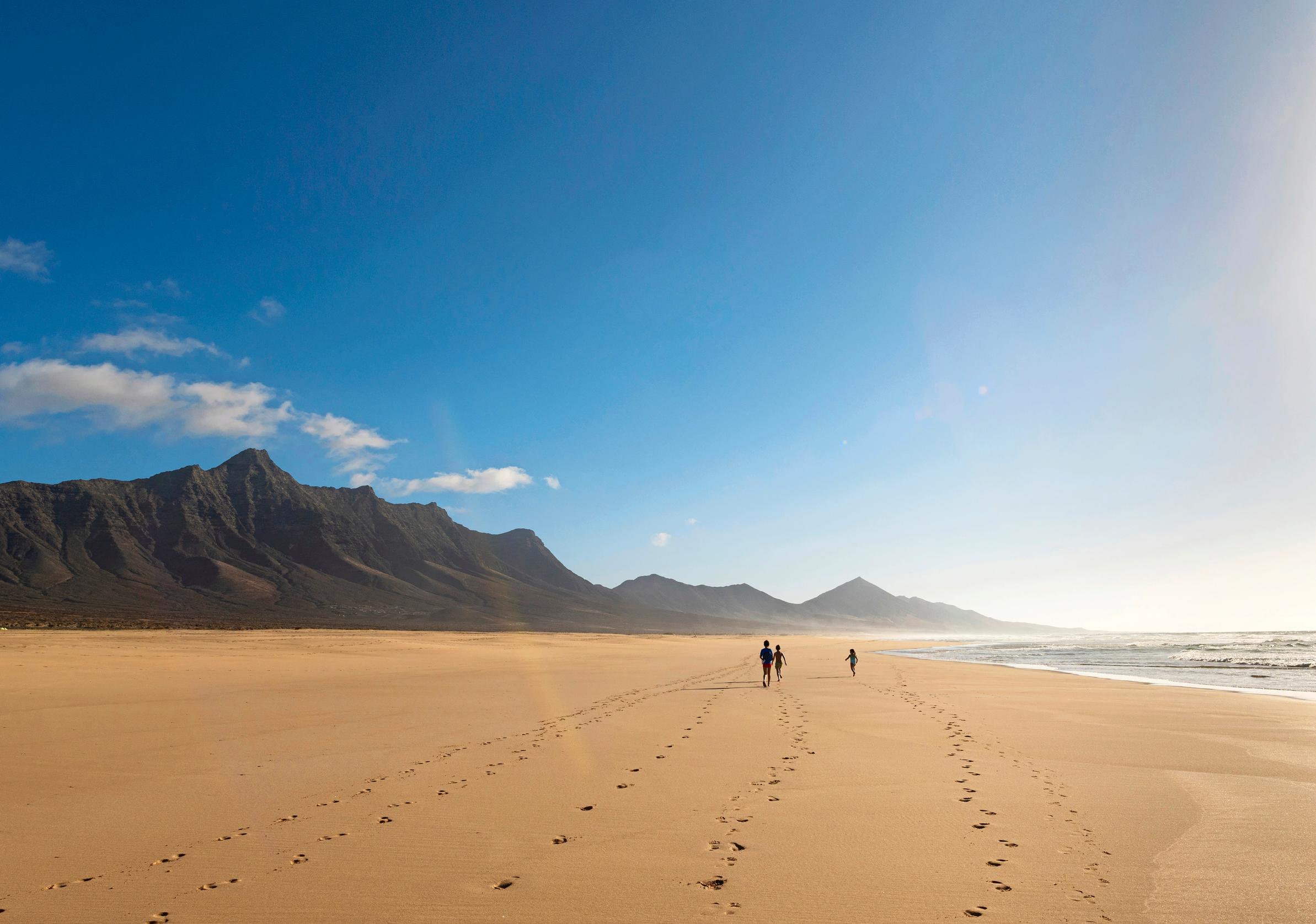 Atlantin ympäröimä Fuerteventura tarjoaa auringonpalvojille yli 150 kilometriä rantaviivaa. Saharasta kantautunut hiekka on värjännyt osan siitä kullankeltaiseksi. Joiltakin rannoilta löytyy puolestaan tuliperäisen maan tummaa laavahiekkaa ja -kiveä.