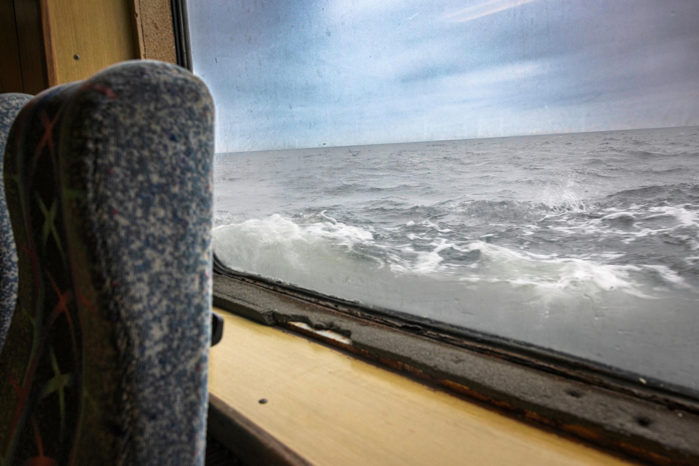 Suurin osa kyytiläisistä jää pois Kirkonmaan saaressa, yhteysaluksen ensimmäisellä pysäkillä. Meillä muilla on taitettavana kaikkiaan 25 kilometrin matka ennen kuin saavumme Haapasaareen.