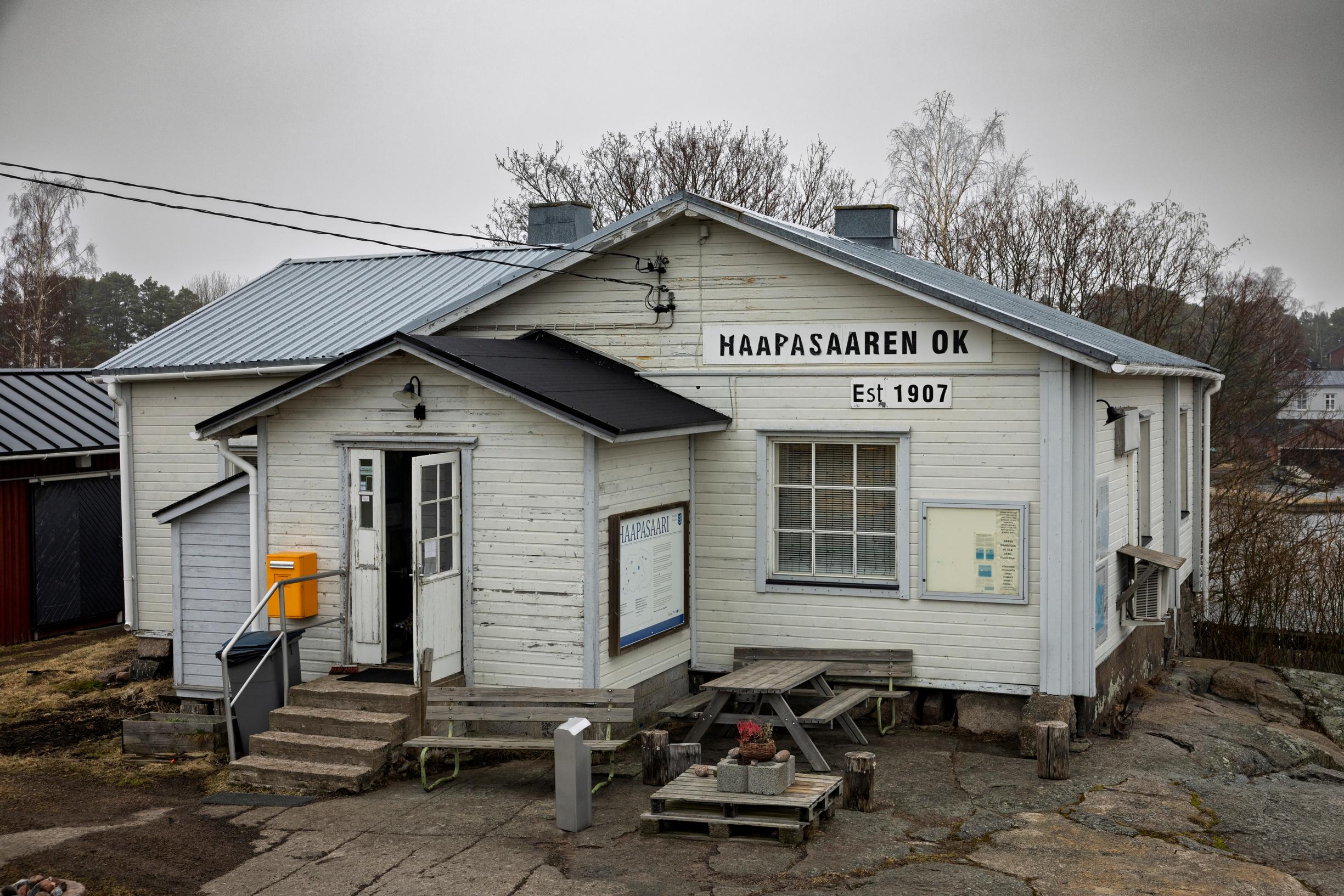 Pari herrasmiestä on silminnähden ehtinyt tyhjentää urakalla kaupan oluthyllyjä. Pekka Jaakkola, 65, on paitsi syntynyt Haapasaaressa, myös yksi niistä seitsemästä, jotka virallisesti nykyään asuvat saaressa. Saaren kouluakin hän ehti pikkupoikana käydä.