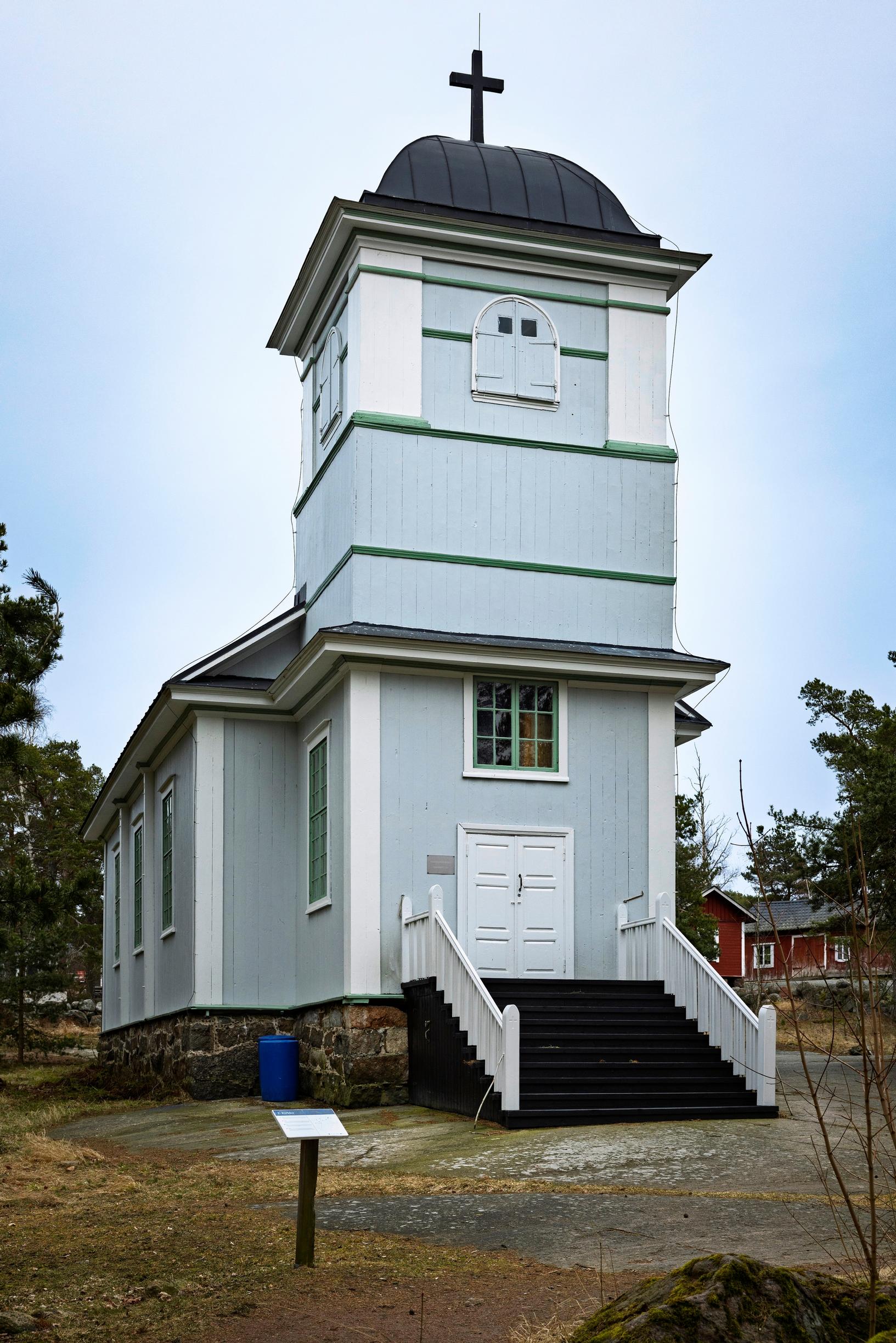 Kuljen kylänraittia pitkin saaren itä- eli uustipuolelle. Vuonna 1858 rakennettu pieni puukirkko kohoaa vieraslaiturin lähellä. Siellä järjestetään satunnaisesti konsertteja Kotkan Musiikkipäivien aikaan ja Kotkan seurakunnan taholta – sekä saarelaisten itsensä, jos saareen sattuu saapumaan ”joku soittotaitoinen”.