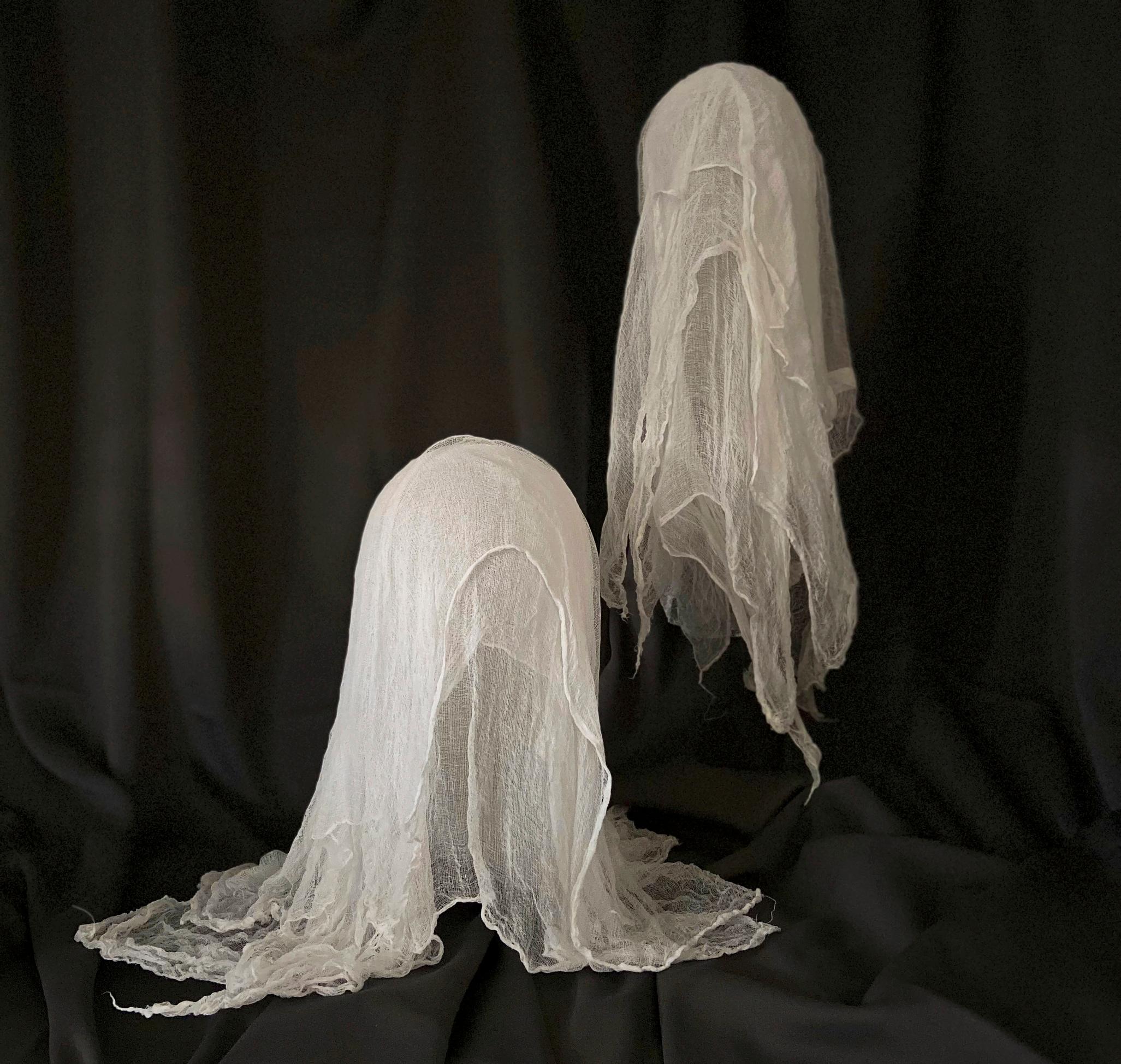 9. Aseta seisova haamu pöydälle tai lipaston päälle. Ompele leijuvan haamun takaraivoon pitkä ripustusnaru tai siima ja ripusta verhotankoon, kattovalaisimeen, ovenkarmiin tai suoraan kattoon maalarinteipillä.