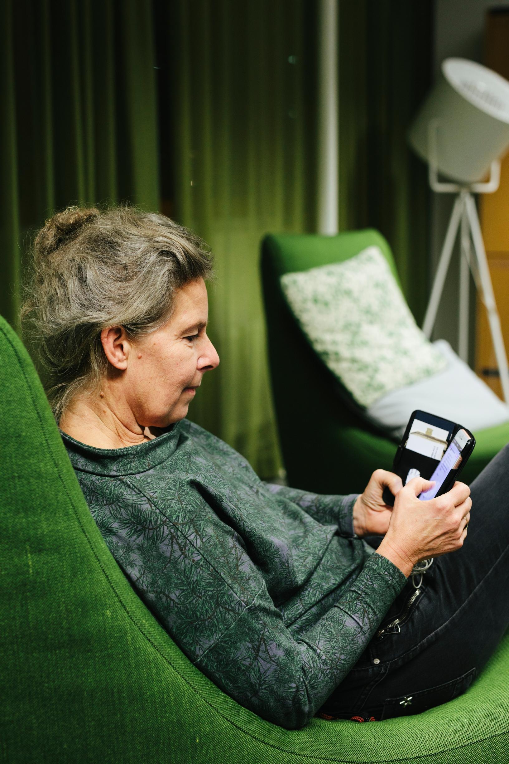 Vapaa-ajallaan hän ulkoilee, pyöräilee tai poimii esimerkiksi mustikoita samalla, kun kuuntelee äänikirjaa.