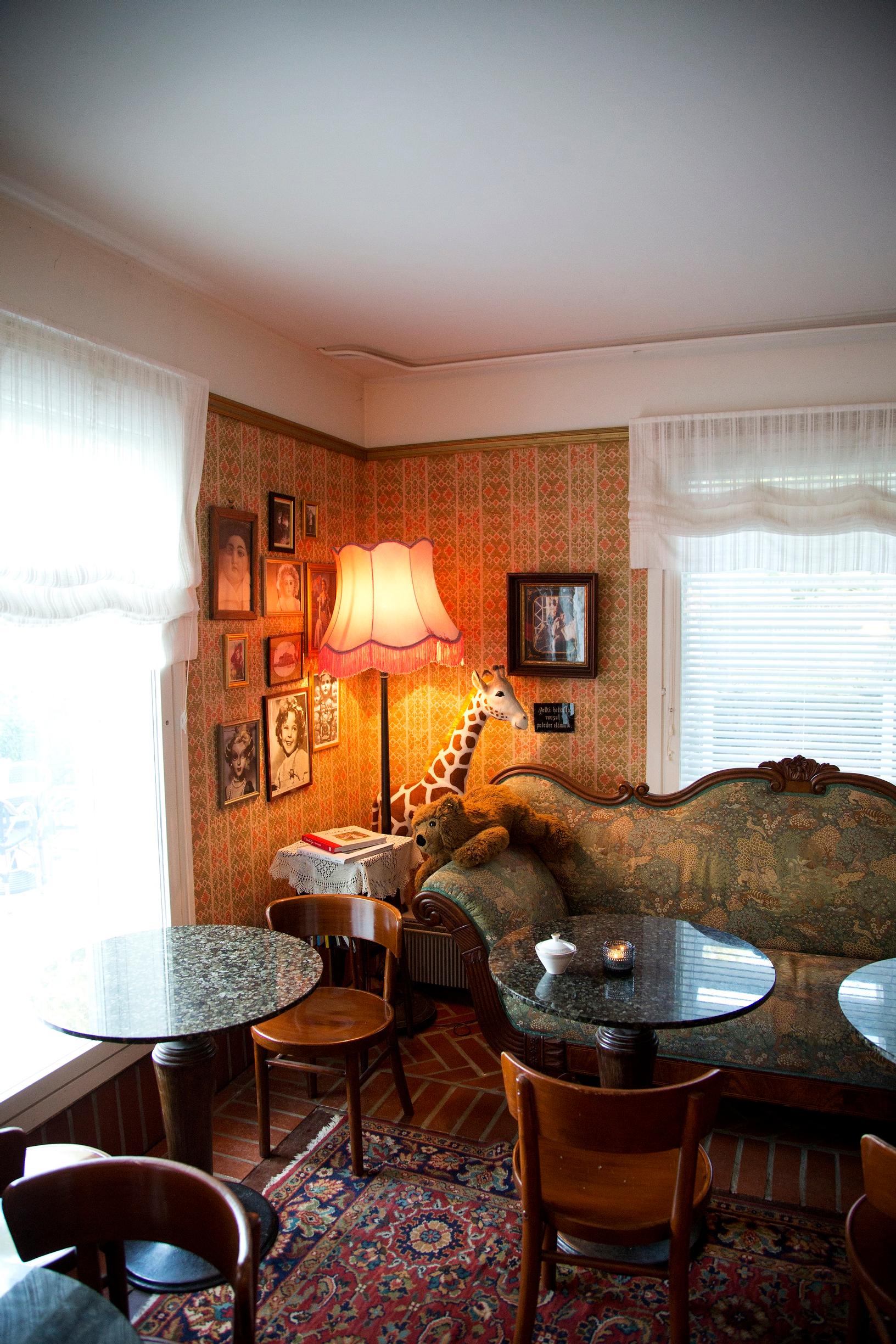 Vaikka kyseessä on lelumuseon kahvila, paikka on sisustettu enemmän aikuisten kuin lasten makuun sopivaksi. Se on tyylikäs eurooppalaishenkinen pikkukahvila, jossa on pyöreät marmoripöydät, sirot puutuolit ja upottava antiikkisohva viidakkoaiheisella päällyskankaalla. Seinillä on mennyttä aikaa henkivä kuviotapetti, tummaa puupanelointia ja mustavalkoisia valokuvia.