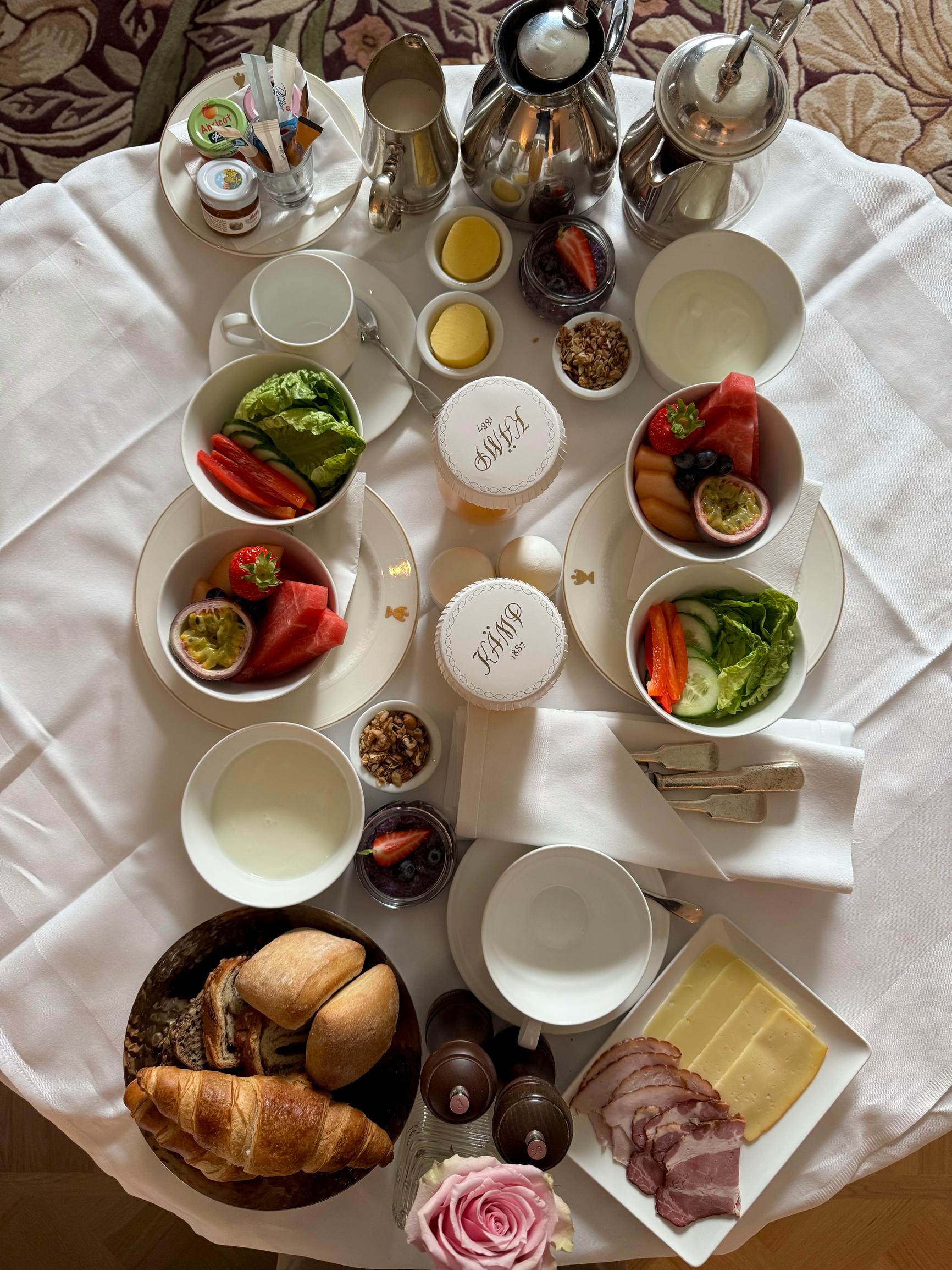 Jos Kämpin uutuussviitistä täytyy nostaa yksi positiivinen asia yli muiden, se on hintaan sisältyvä aamiainen huoneeseen. Tämä mahdollisuus kannattaa ehdottomasti hyödyntää.