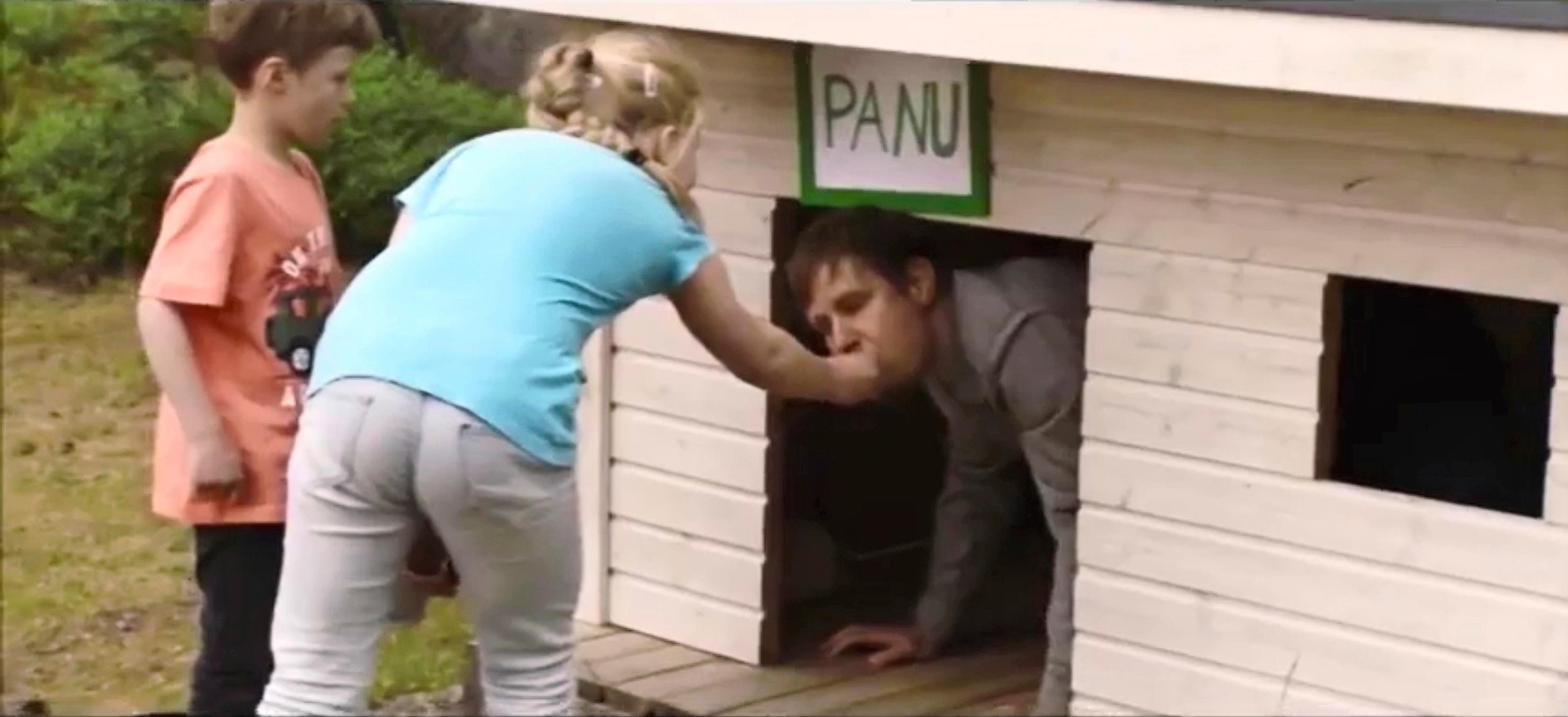 Moni tulkitsi mainoksen väärin: isi on laitettu rangaistukseksi koirankoppiin, koska hän on ostanut kalliin auton. Ja sehän on tietysti loukkaavaa.