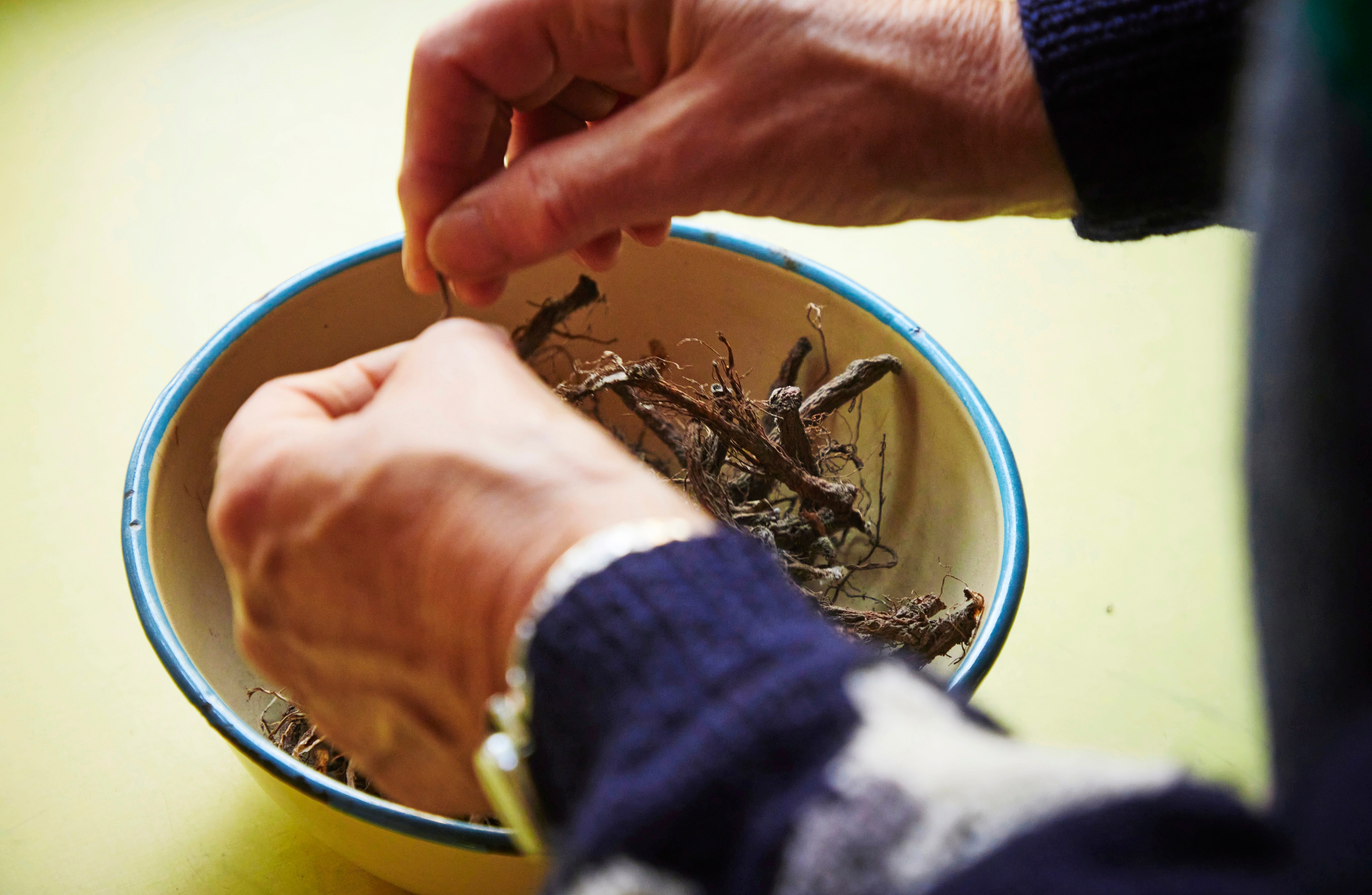 Marja Hartola ei ole rohjennut kokeilla voikukanjuurikahvia, mutta pakurista hän on korviketta tehnyt. Enemmän hän kuitenkin nauttii itse villivihanneksista tekemäänsä yrttiteetä, jota juo pitkin vuotta. Kyse ei toki varsinaisesti ole teestä, sillä teenlehtiä mukana ei ole.