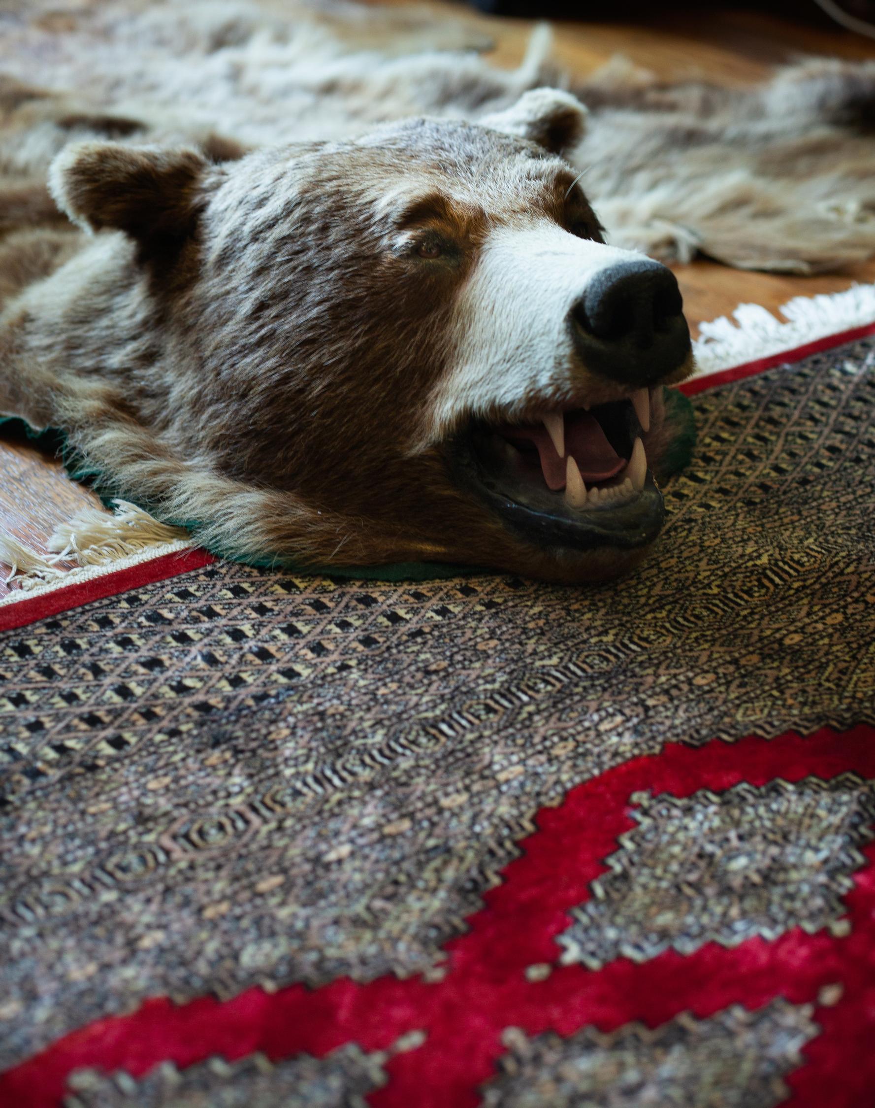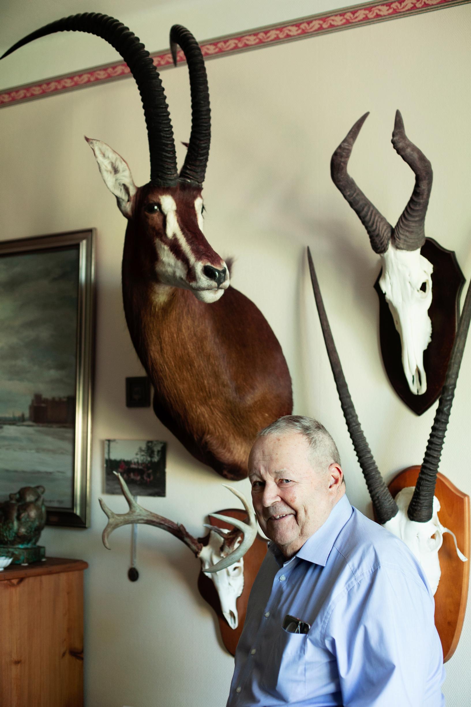 Hirvi on kaadettu Kuolan niemimaalla Venäjällä, pahkasika Namibiassa. Trofeet on ripustettu ruokailuhuoneesta halliin vievän oviaukon yläpuolelle.