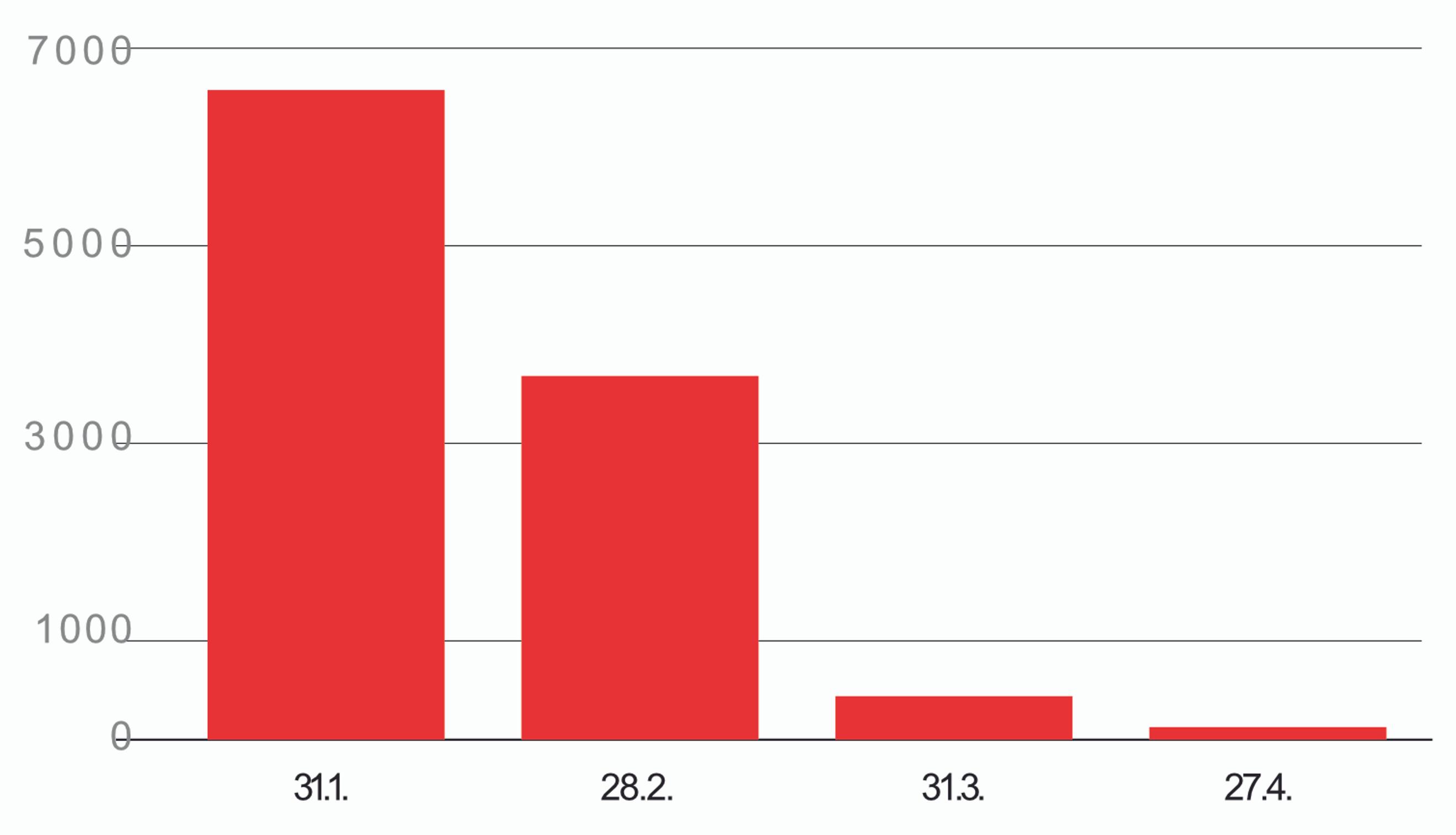 Uusia tapauksia ilmaantuu keskimäärin enää 120 päivässä ja suunta on jyrkästi alaspäin. Huhtikuun lopussa sairastuneiden määrä on Israelissa siis enää vain vajaa kaksi prosenttia tammikuun määrästä.
