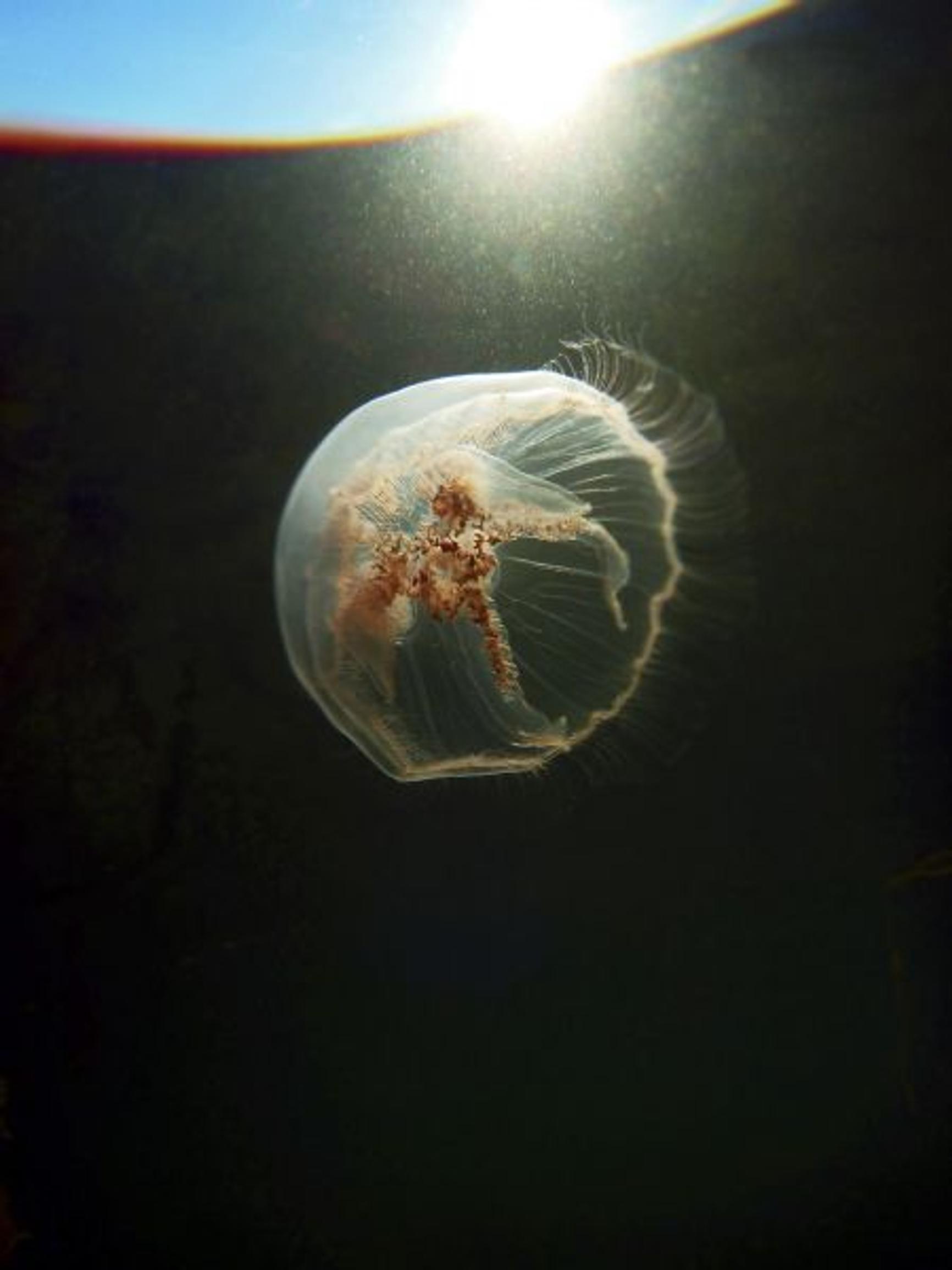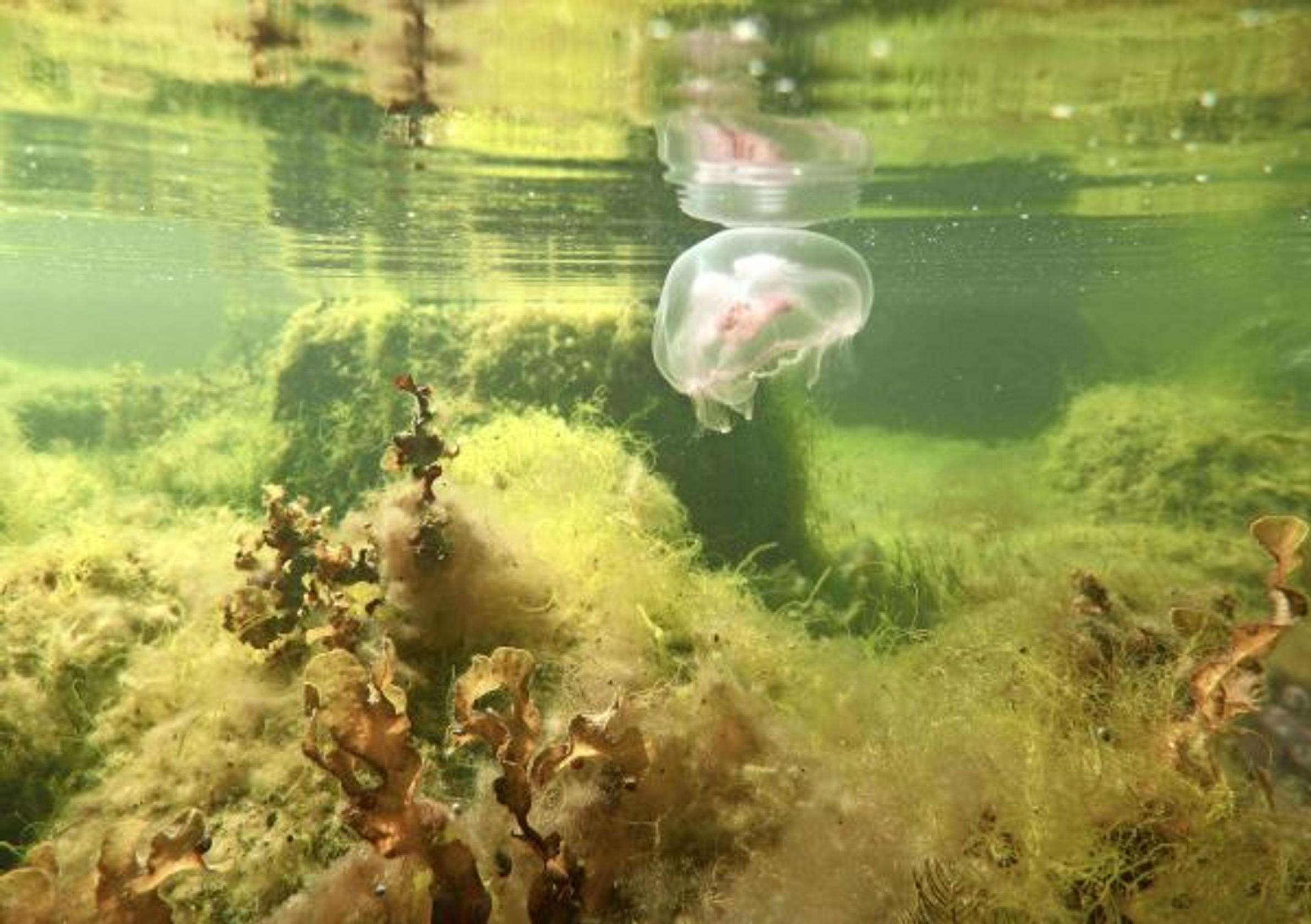 Meduusa uiskentelee Ahvenanmaan saariston matalissa ja kirkkaissa rantavesissä.