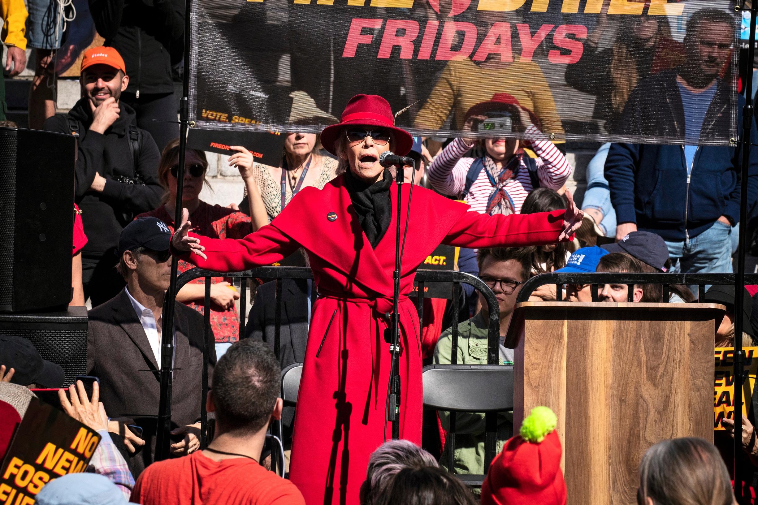 Jane Fonda, 83, on ollut kuuden vuosikymmenen ajan Hollywoodin kiitelty ja kiistelty tähti. Rohkea, suorasanainen, herkkä, itsekriittinen ja epävarma näyttelijä on joutunut usein aktivisminsa vuoksi tekemisiin myös lain kanssa ja ollut usein syytettynä epäamerikkalaisuudesta. Ilmastokriisitalkoisiin hänet innosti ruotsalainen Greta Thunberg.