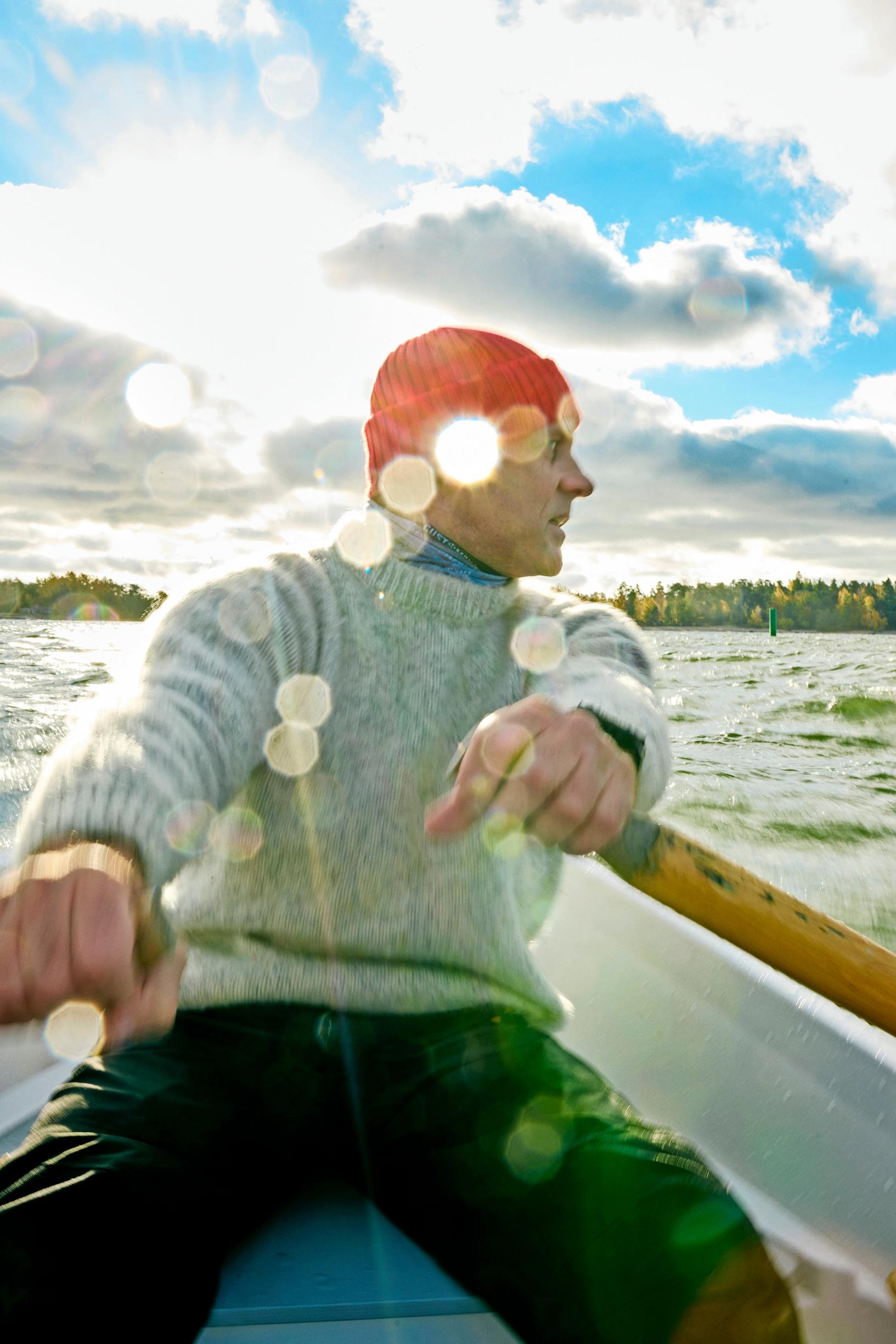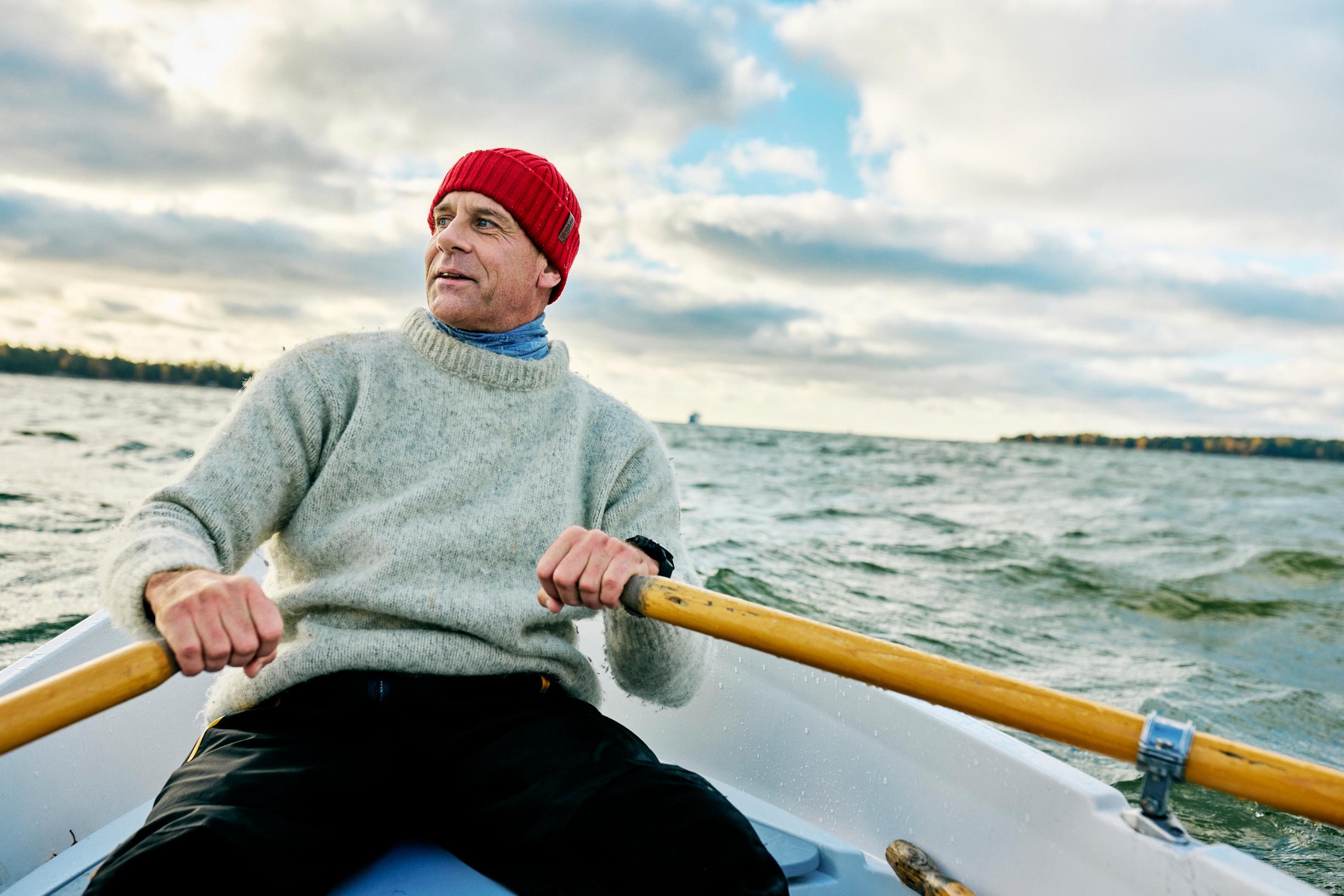 Lauttasaarenselällä käy vinha puhuri. Soutuvene keikkuu holtittomasti aallokossa ja pärskeet lyövät laidan yli. On lokakuun puoliväli, ja olemme valtakunnansoutaja Jari Saarion kanssa souturetkellä Helsingin edustalla olevaan Pihlajasaareen.