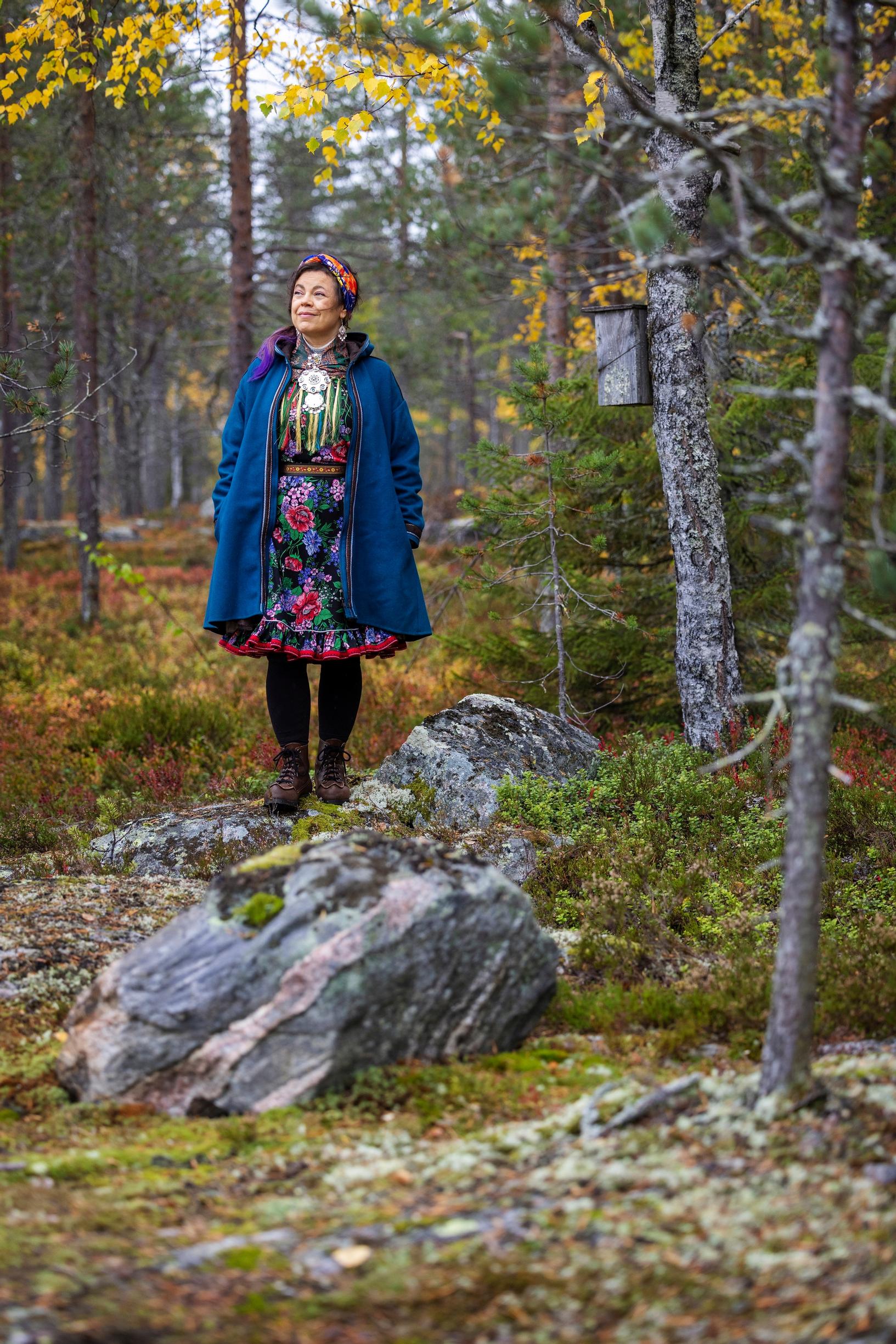 – Oltiin porotokkaa paimentamassa metässä. Kun olet siellä tunturissa, maisema on koko ajan edessä. Vaikka laitat silmät kiinni, näet maiseman. Se on osa itseä, Ulla Pirttijärvi kertoo.